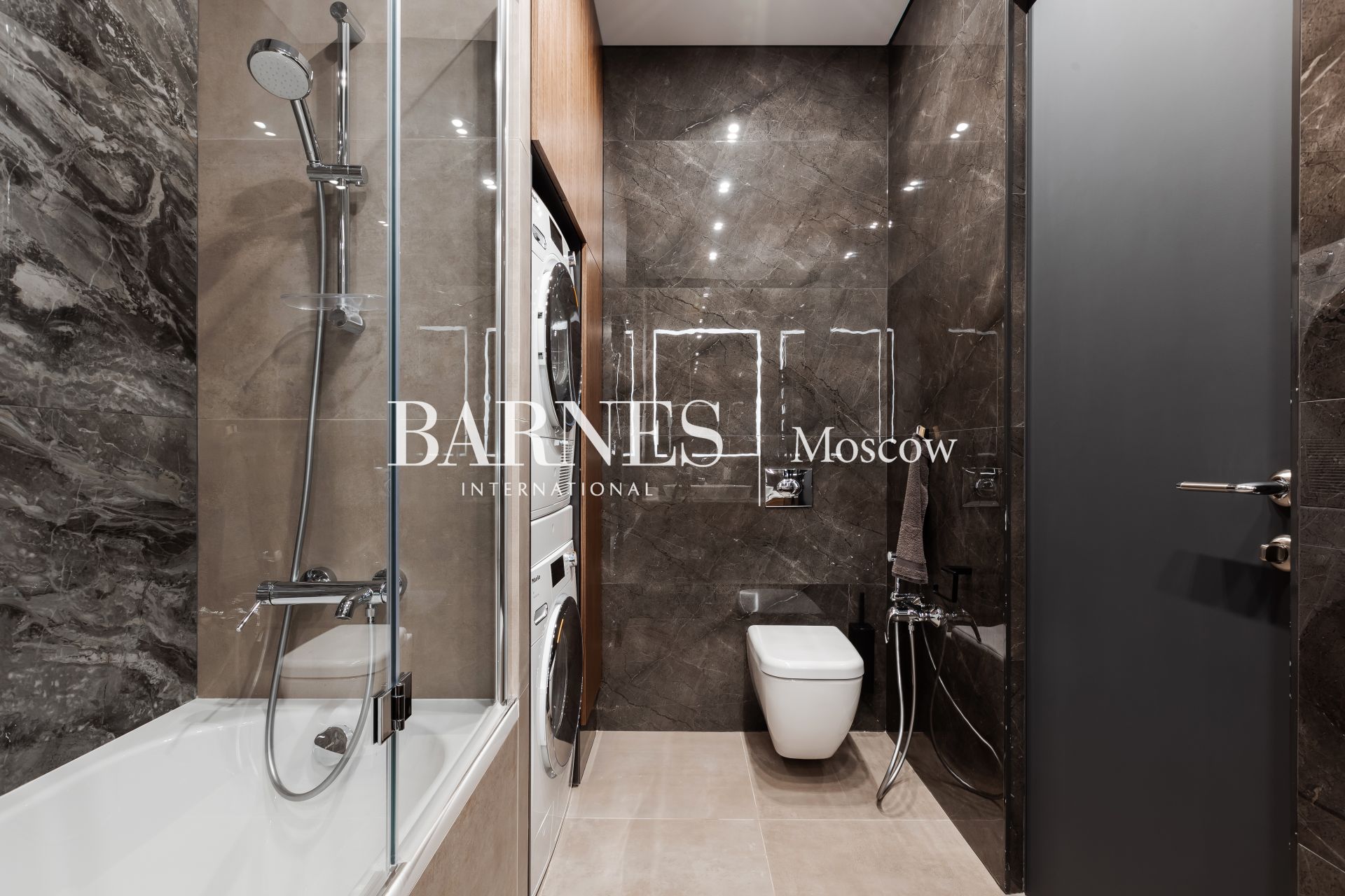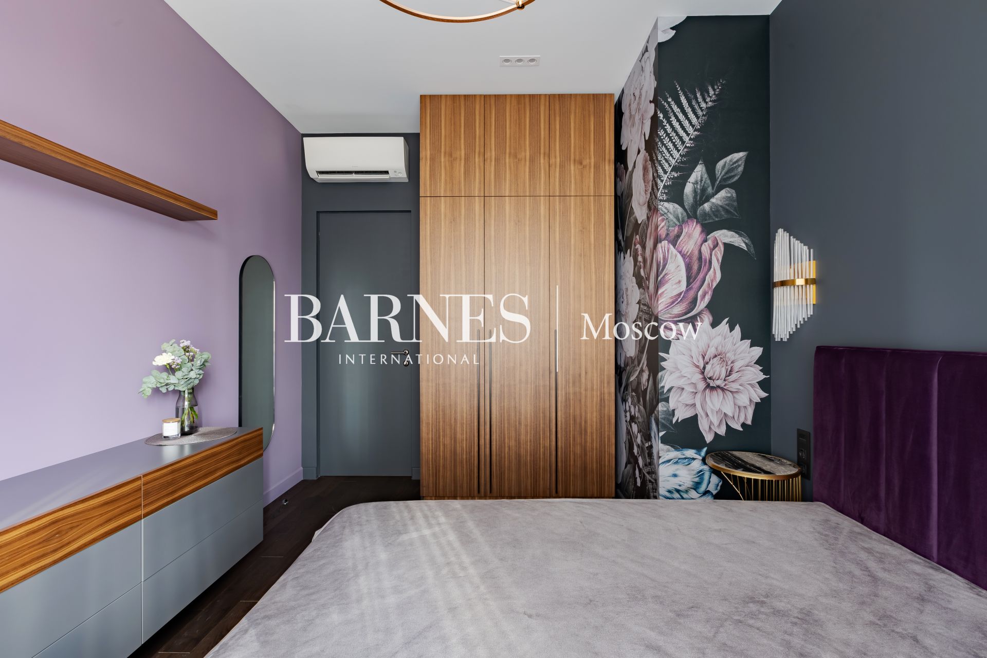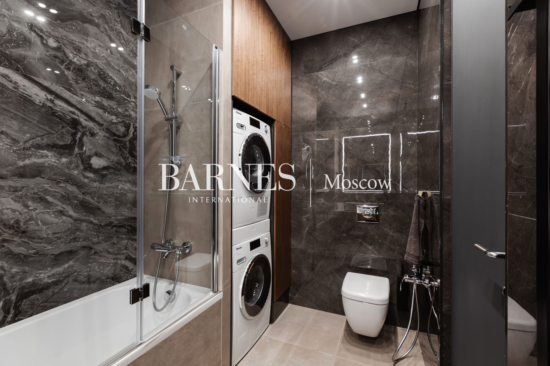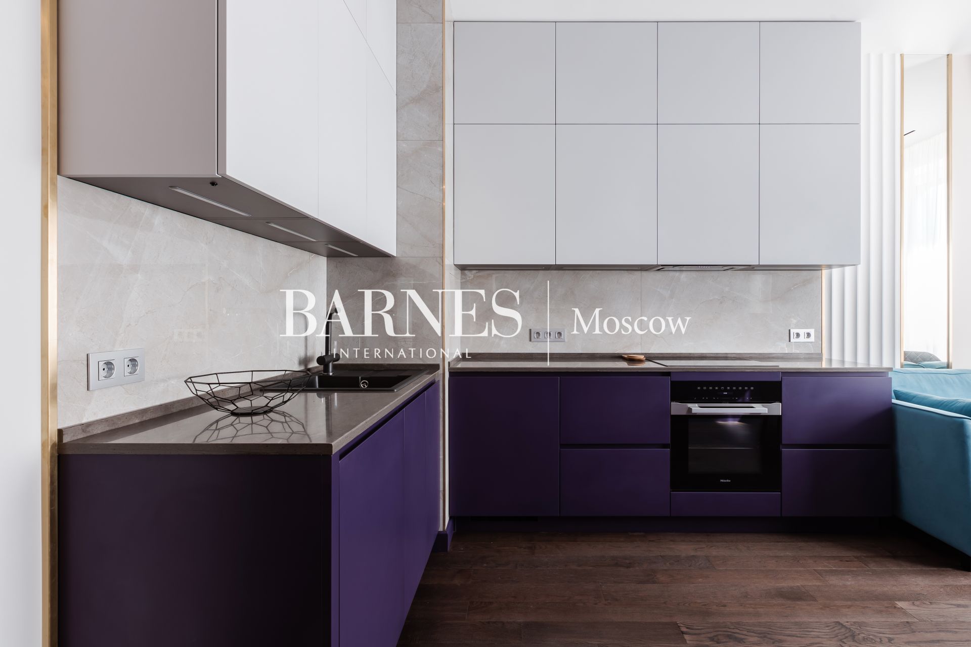 Встроенная мебель изготовлена по индивидуальному заказу. Подоконники из камня. Квартира оборудована бытовой техникой премиальных брендов: Miele (варочная панель, духовой шкаф, микроволновая печь, стиральная и сушильная машины), посудомоечная машина NEFF, Liebherr (холодильник, морозильные камеры), телевизоры Samsung, кондиционеры Daikin. Установлен фильтр очистки воды (обратный осмос).