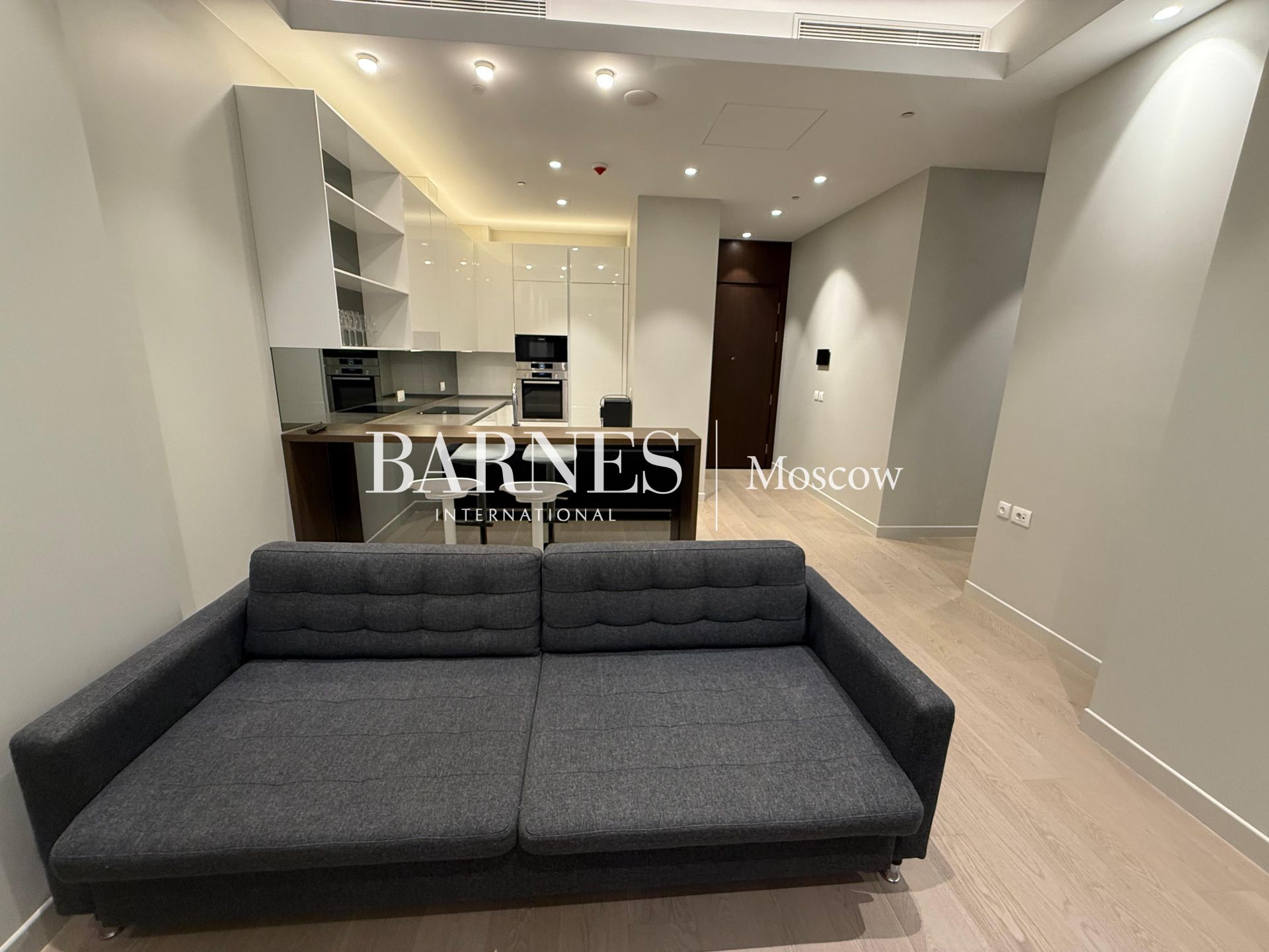В апартаменте выполнена современная и стильная отделка. Функциональное планировочное решение: просторная гостиная с зоной кухни, спальня, гардеробная, санузел.
