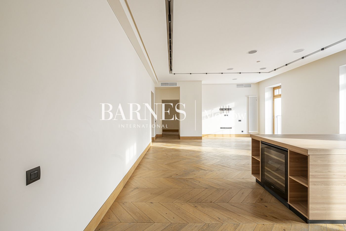 Просторная квартира на две стороны света наполнена воздухом и светом. Высокие потолки подчёркивают благородную геометрию помещений, а панорамные окна открывают виды на уютные дворы и архитектурные доминанты района. Здесь продумано всё для жизни большой семьи или тех, кто ценит личное пространство и функциональность.