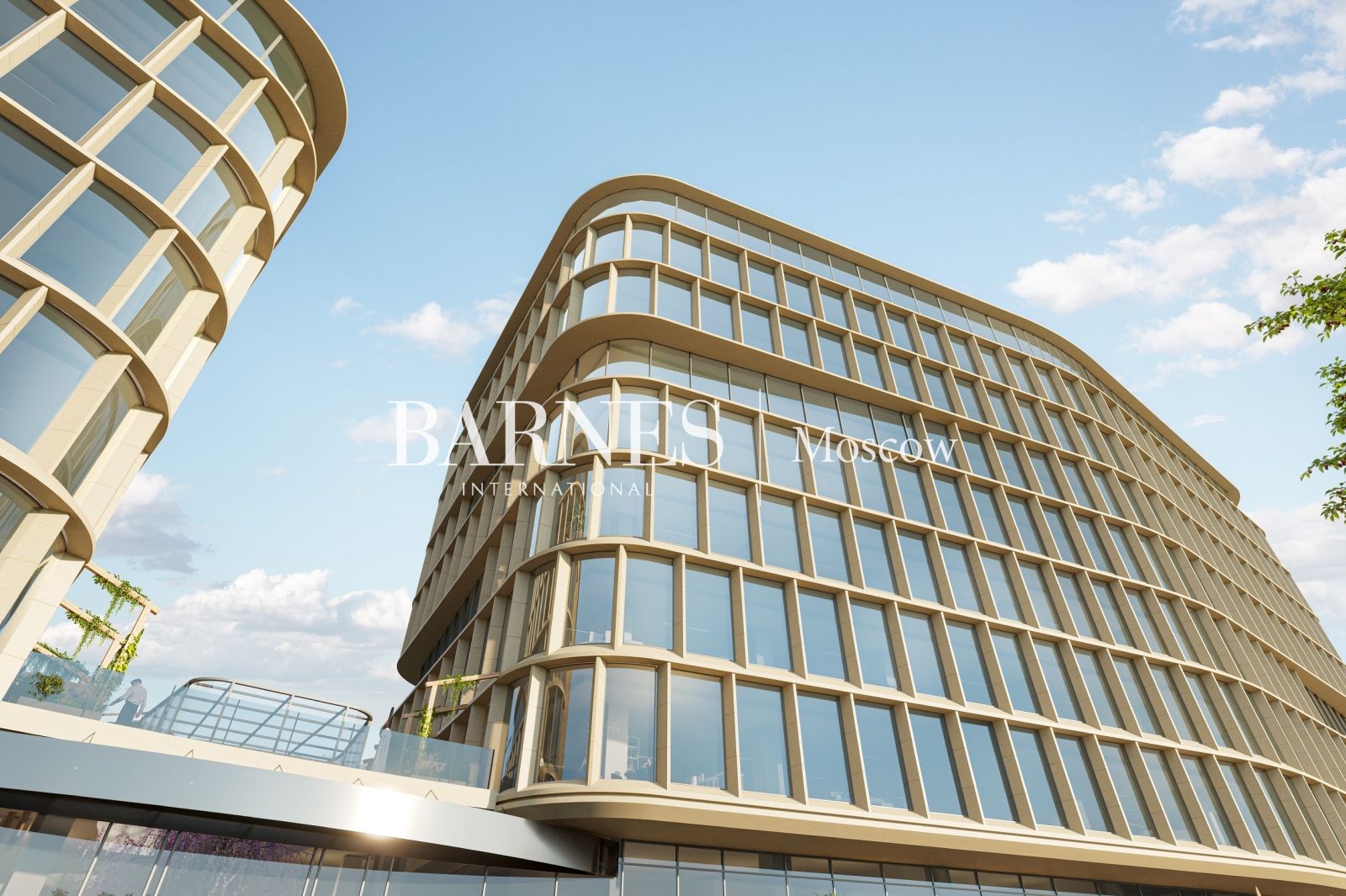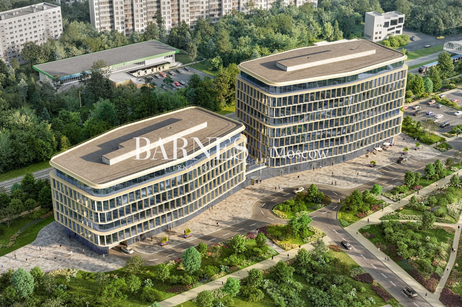 Новый бизнес-центр класса А расположится в районе Кунцево в парковой зоне на западе Москвы. До станции метро Кунцевская всего 2 минуты. Удобный выезд на Рублевское шоссе и Кутузовский проспект. Первый этаж - стилобат, который объединяет два корпуса бизнес-центра, торговые зоны, общий ресепшн. бизнес-центра. Второй этаж Корпуса 2 - фитнес, столовая.