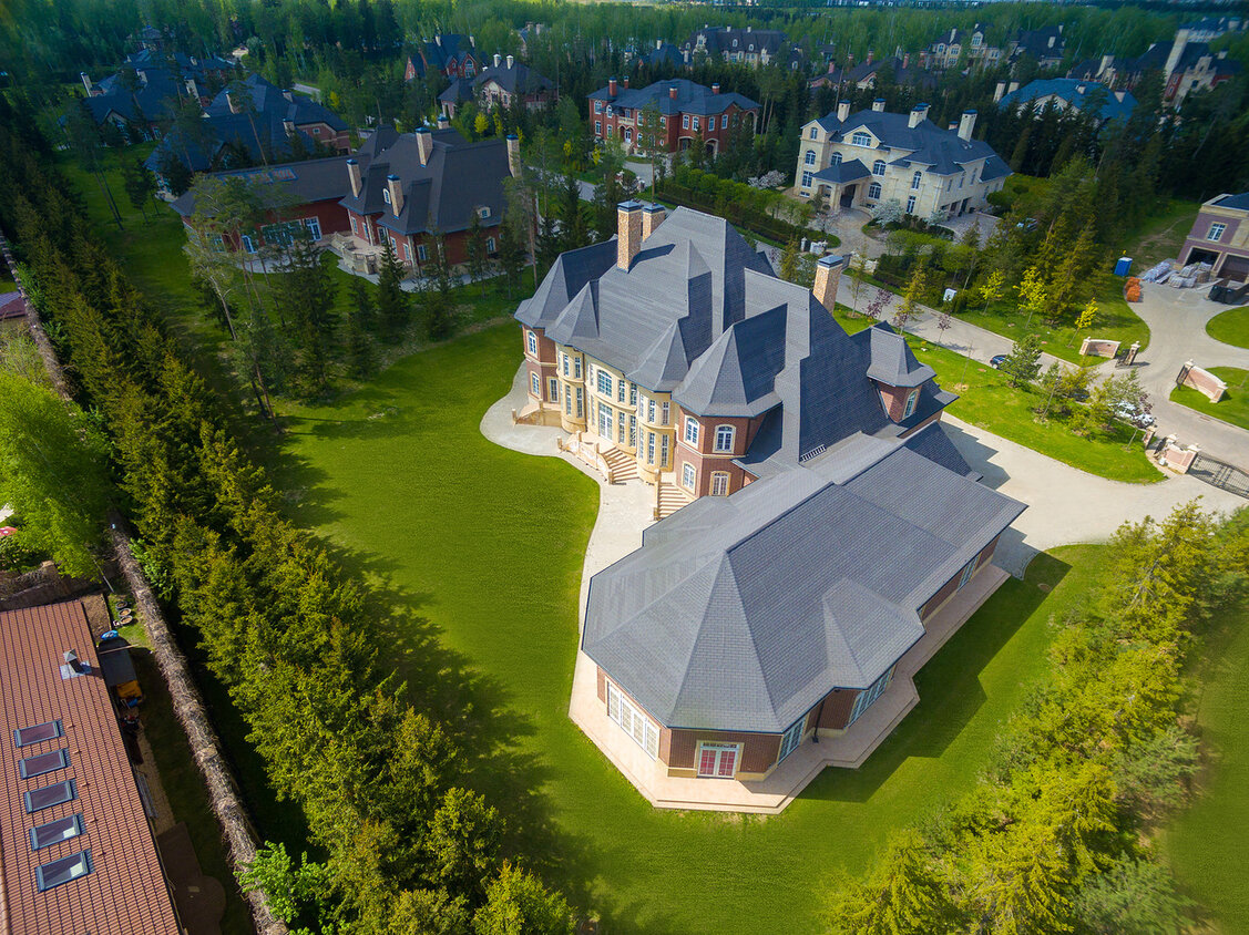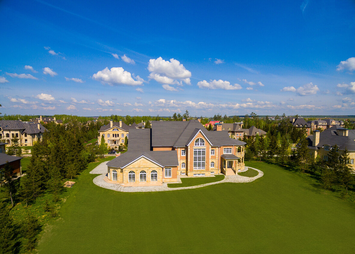 Площадь домов от 400 кв. м. Сами резиденции выполнены в разных стилях в зависимости от вкуса владельцев. Каждый дом располагается на просторном участке, спланированном так, чтобы создать максимальную приватность. Все резиденции органично интегрированы в окружающую среду и природный ландшафт так, что из панорамных окон открываются виды на изысканные пейзажи поселка.