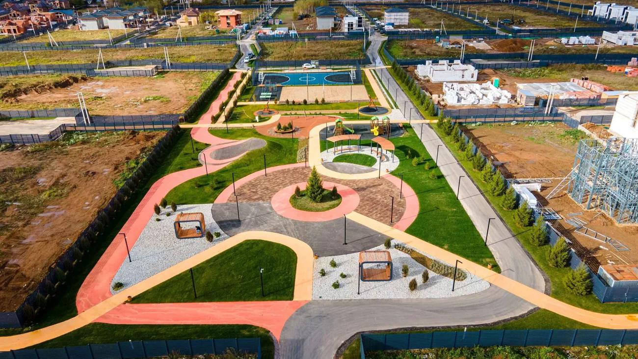 Площадь посёлка составляет 25 га, на которых расположено 316 участков от 5 до 9 соток. Благоустройство включает разнообразные спортивные и детские площадки для совместного отдыха с семьёй и соседями. Внутренние дороги посёлка асфальтированы, предусмотрена гостевая парковка и круглосуточная охрана с видеонаблюдением.