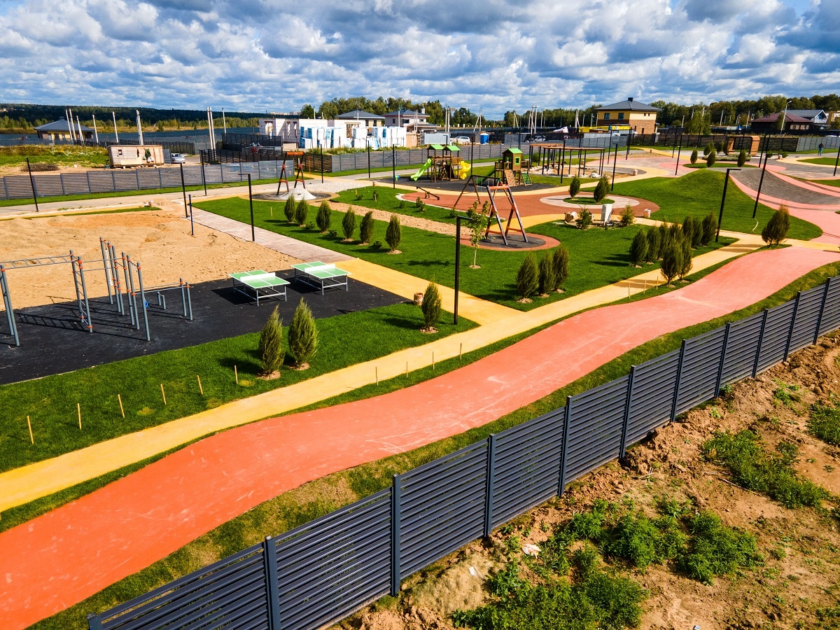 Внутри поселка есть все для повседневной жизни. Детские и спортивные площадки, теннисный корт, футбольное поле и прогулочные дорожки. Выезжать за территорию каждый день не нужно.