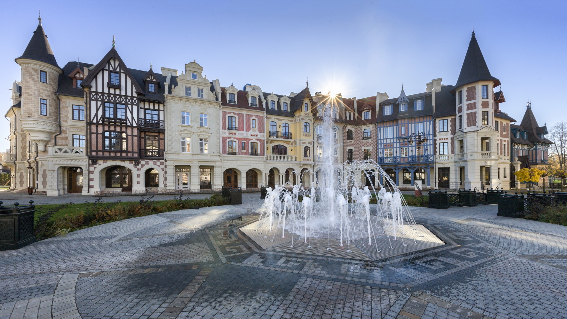 Эскизы особняков создал известный французский архитектор Жан Реми. Среди них встречаются и модерн, и ренессанс, и даже готика. В поселке есть даже копия старинного квартала, где верхние этажи занимают многоуровневые элитные квартиры, а нижние — пекарня, кафе и мини-маркет. А огромный парк напоминает о садах Версаля. Живописная природа с природным водоемом и лодочным причалом понравится любителям романтики. Развитая инфраструктура, включающая в себя ресторан, спортивный и SPA-комплекс, детские площадки и многое другое обеспечивают высочайший комфорт для жителей поселка. Важно, что посёлок круглосуточно охраняется. Для тех, кто следит за здоровьем будет приятным дополнением, что питьевую воду жители «Довиля» получают из собственной артезианской скважины.