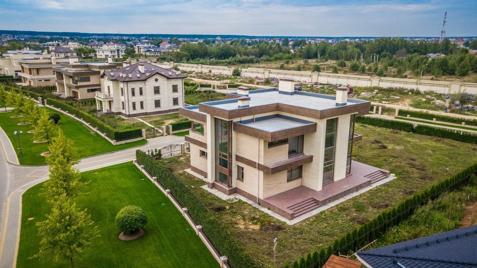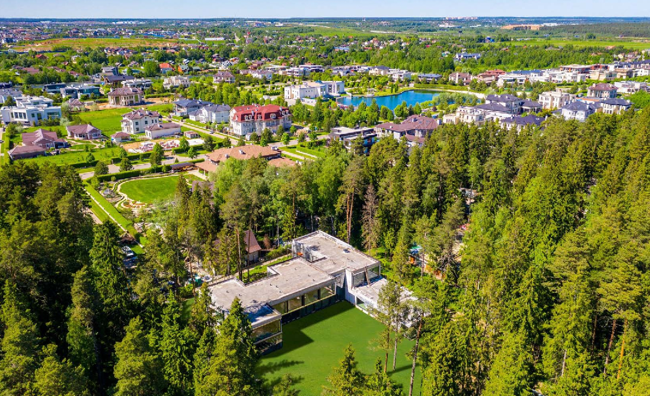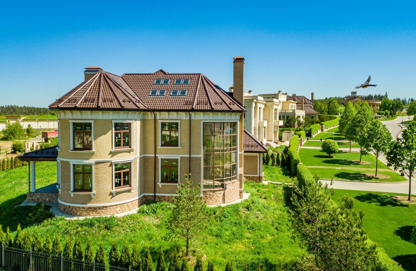 Концепция поселка заключается в сочетании экологической чистоты окружающей природы и современных удобств для жителей. Особняки в поселении выполнены в стилях “Деко” и “Ампир”, которые сочетают в себе классические и современные элементы архитектуры.