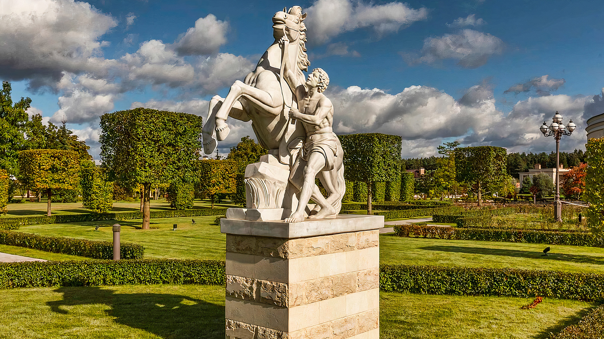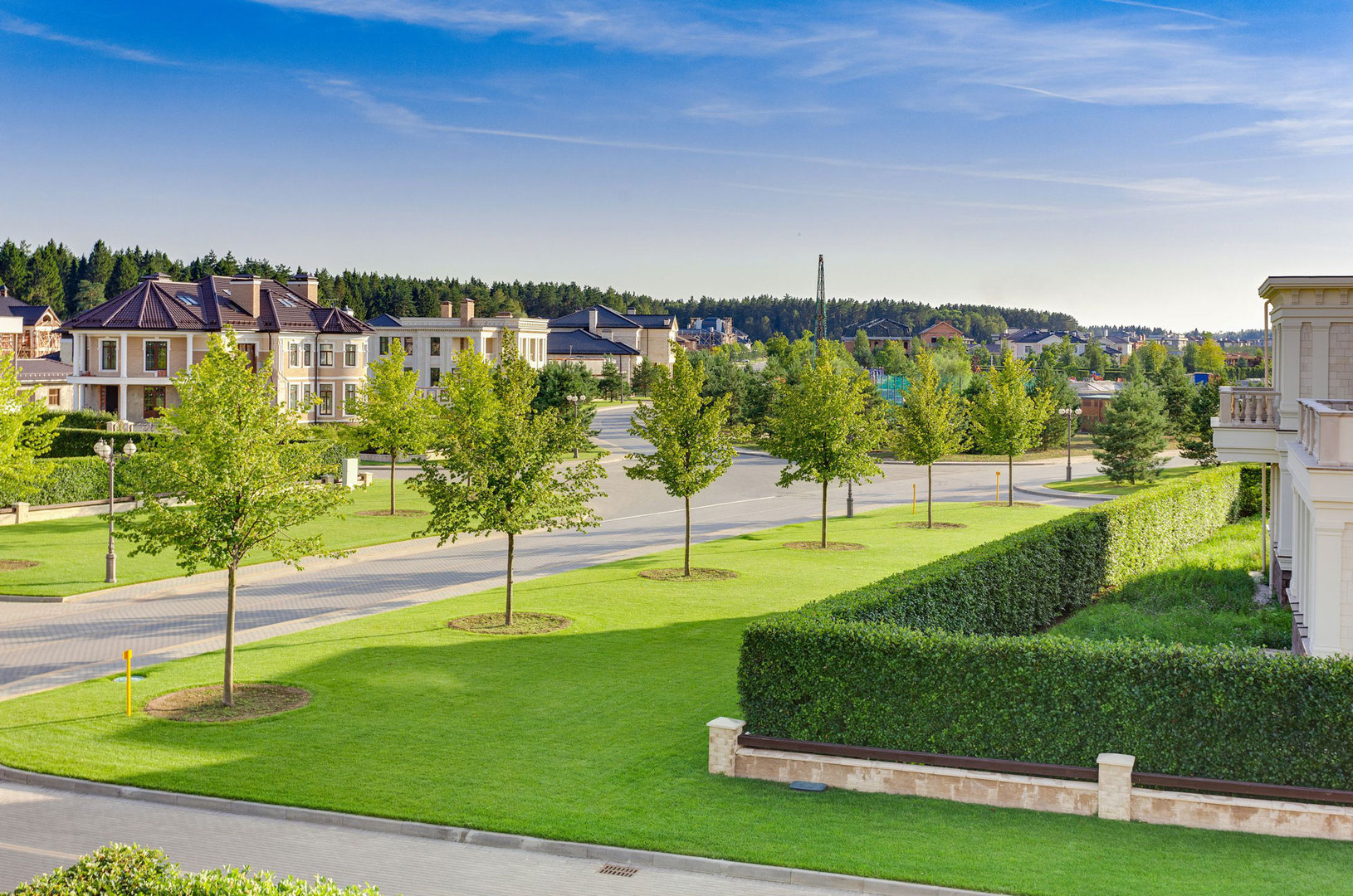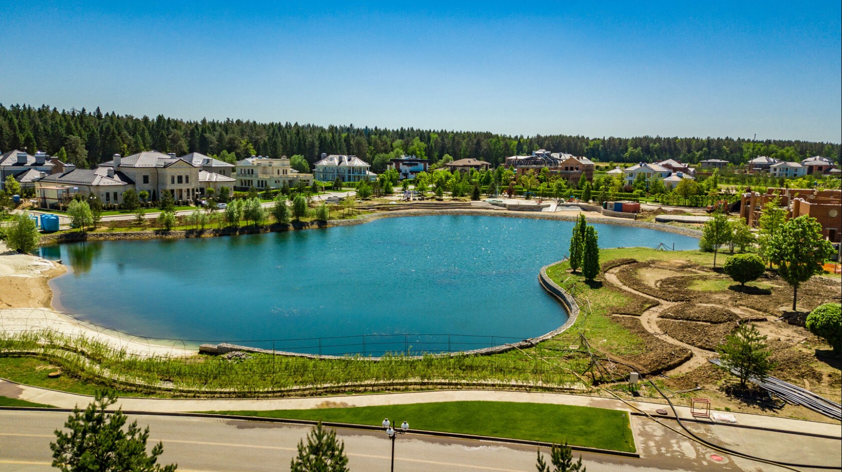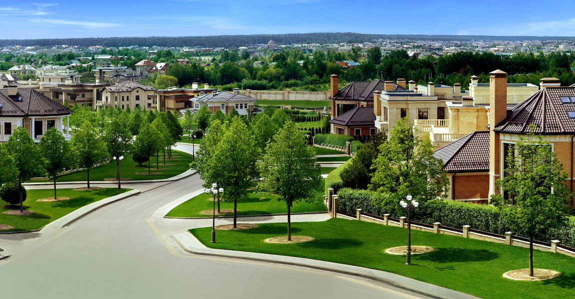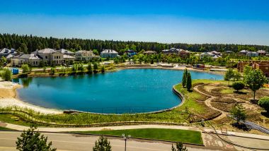 Особое внимание уделено оформлению парковой зоны. Профессиональные дизайнеры создали искусственное озеро, рукотворную реку, фонтаны, цветники и павильоны, которые придают поселку особую атмосферу уюта и гармонии.