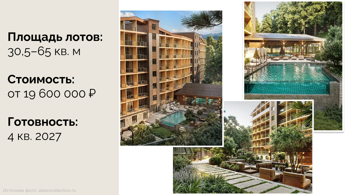 Проект интересен инвесторам, которые ищут проверенную бизнес-модель. Гостиничный оператор Alean Collection — неоднократный победитель премии «Курортный олимп» в номинации «Лучшее средство размещения “все включено”», а отдых по системе — один из самых востребованных. Прогнозируемая прибыль с одного номера в Alean Select Arkhyz — от 1,6 млн рублей в год.