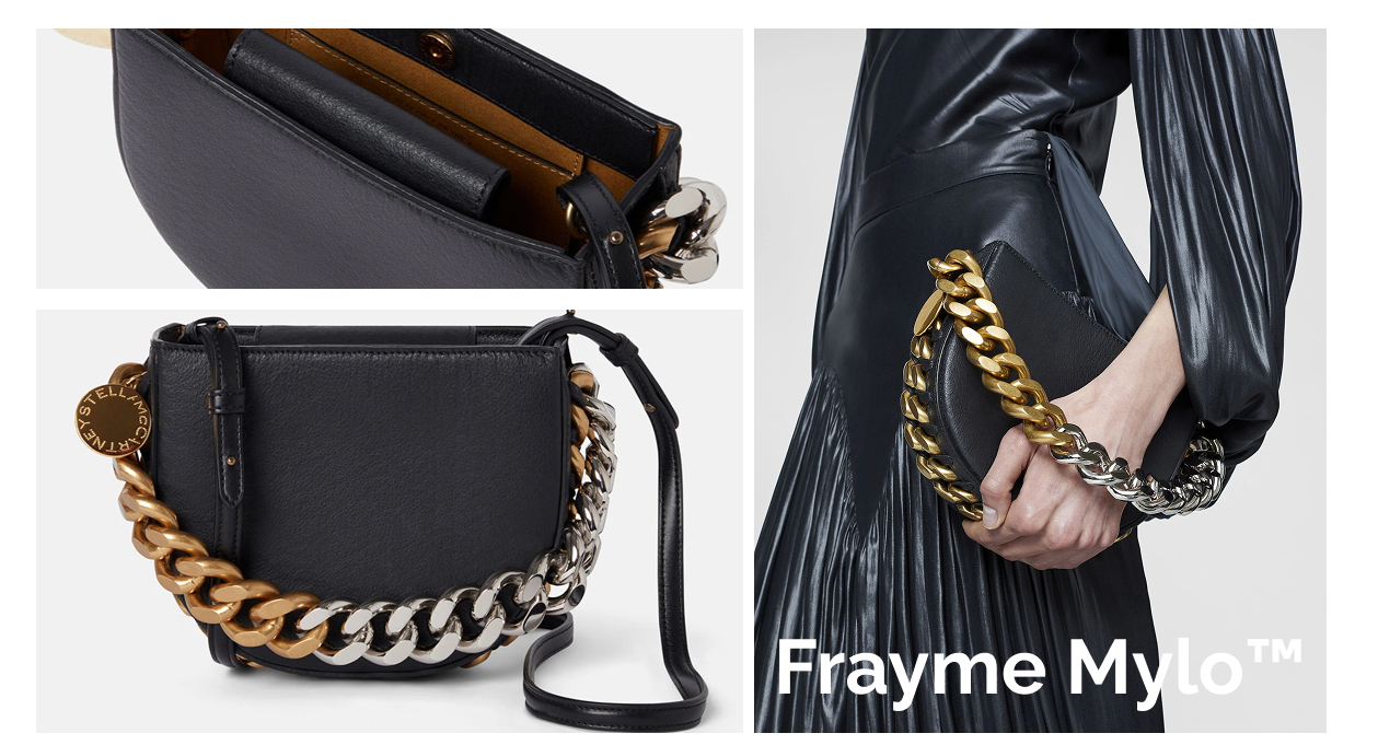 Яркий пример — Stella McCartney, пионер эко-люкса, отказавшаяся от меха и кожи в своих изделиях. В 2022 году дом Stella McCartney выпустил сумку Frayme Mylo™, ставшую первой в мире люксовой сумкой, изготовленной из мико-материала (мицелия грибов) вместо традиционной кожи.