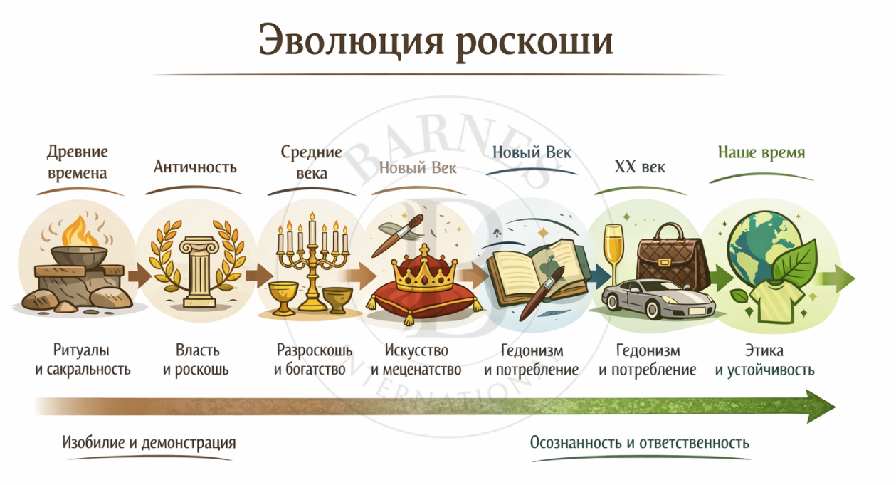 Новая концепция осознанной роскоши опирается на ряд ключевых принципов и практик, отличающих ее от традиционного подхода к люксу: