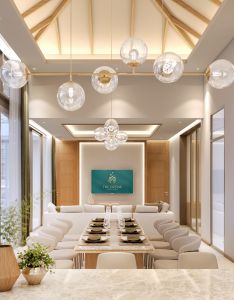 Вилла площадью 369.50 кв.м включает в себя просторную гостиную с высокими потолками и столовую открытой планировки. Хорошо оборудованная кухня с барной стойкой, а также удобная кладовая и гостевой туалет. В каждой спальне собственная ванная комната, а в главной спальне имеется особенно просторная ванная комната с отдельной ванной и душем.