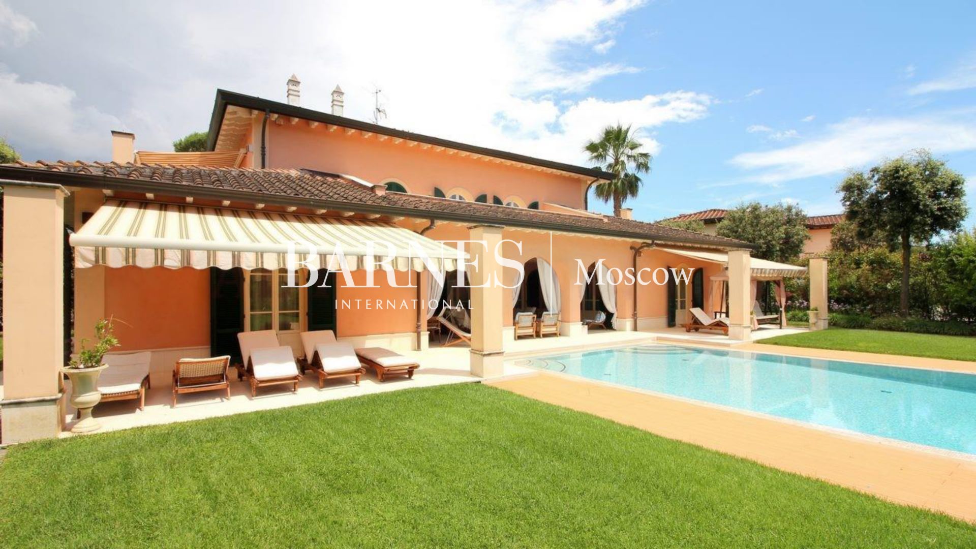Авторство знаменитого архитектора Ф. Чирилло и аутентичный тосканский стиль задают тон безупречной эстетике этой виллы. Её интерьер украшен эксклюзивными деталями, такими как итальянская мебель и светильники из муранского стекла. Просторная планировка включает несколько гостиных зон, элегантные спальни с санузлами и полноценный кинозал. Современный комфорт обеспечивают полы с подогревом, климат-контроль и прогреваемый бассейн с подсветкой. Вам гарантирована полная приватность и сервис, включающий работу садовника и клининговой службы. Идеальное расположение в районе Виттория Апуана открывает легкий доступ к морю, всего в 500 метрах от вашего порога.