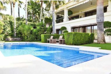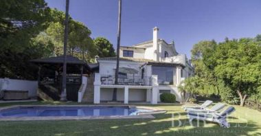 This Elegant Family villa is located in one of the prestigious areas of Benahavis, in a well established secure community of Los Arqueros Golf & Country Club. Stunning south facing frontline golf, boasting spectacular panoramic views over majestic mountains, Golf club and endless Mediterranean sea.This classic style 7 bedrooms villa sets on plot of 1250 sqm, build over three levels with a generous outdoor and indoor living spaces. Beautiful entrance hall with double height ceilings, spacious and airy open plan living-dinning area with direct access onto the large covered terrace. Modern fully equeiped kitchen with the top range of appliances also has an access into the terrace, fruit garden and a Barbecue area overlooking beautiful infinity pool, golf course and the mountains.Stylish master bedroom is situated on the upper level, with a generous dressing area and beautiful en suites. There are also another 3 double bedrooms, all with en suites and an access into the terrace. The lower level features one double bedroom with en suite and a staff room. Laundry area, gymnasium, sauna, large cinema room and a big entertaining area with exclusive bar, fireplace, pool table and relaxation zone. Garage for 2 cars.This Perfect Family home has plenty of storage spaces and its build to a highest standards to offer you maximum comfort and tranquility. Viewing is highly recommended!
