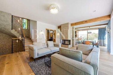 Мы предлагаем этот новый дом на продажу. Здание только что было закончено и обставлено высококачественной мебелью и оборудованием, так как владелец строил его для себя. Вкус и выбранные материалы отражают природу своей захватывающей простотой. Все комнаты обставлены мебелью, гардеробом с внутренним освещением. Комнаты просторные и переполнены естественным светом. На верхнем этаже все спальни имеют свою собственную террасу, на этом же этаже расположены 2 ванные комнаты. На первом этаже можно попасть в просторную гостиную, где дровяной камин занял свое чудесное пространство. Самой уникальной частью дома является гараж, где есть возможность внутренней парковки на 5 огромных машин.
