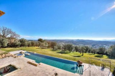 Роскошная недвижимость с панорамным видом на море и гольф недалеко от Канн и в 20 минутах езды от аэропорта Ниццы. Bastide, частично из камня площадью около 600 кв.м., состоит на 2 уровнях на первом этаже из гостиной, библиотеки, столовой с прекрасным видом на море на юге и в направлении старой деревни Chateauneuf на севере, большой оборудованной кухней, отдельной буфетной и прачечной, крытой террасой с барбекю, туалетом и душем снаружи, 3 великолепными спальнями с ванными комнатами. Наверху большая главная спальня с 2 гардеробными, ванной комнатой и отдельной террасой с панорамным видом, а также вторая спальня с душевой. В подвале великолепный винный погреб с кондиционером, сигарный погреб и кинозал. Парк площадью 1 га, благоустроенный Жаном Мусом, с видом на юг, засаженный 140 оливковыми деревьями. Отапливаемый бассейн 24x6 метров. Дом смотрителя 60 м², 3 гаража, многочисленные автостоянки. Построенная в 2004 году архитектором Сансоэ, изысканная отделка со всеми современными удобствами (кондиционер, полы с подогревом, электрические жалюзи с дистанционным управлением, звуковая система bose, охватывающая весь интерьер виллы и террасы снаружи, высота потолков 3 метра).