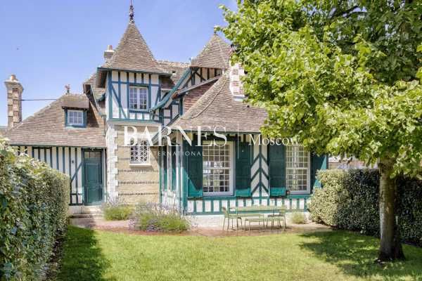 Deauville prime sector - A few yards from the beach, Barnes is advertising this magnificent Anglo-Norman villa over two levels that has been renovated with quality materials and features a hall with a cloakroom, a fitted and equipped kitchen opening onto a very bright 484 sq ft living room with a fireplace and solid oak parquet flooring, a vast bedroom on the ground floor with an en suite bathroom and a walk-in closet, a guest toilet and a laundry room. A beautiful staircase leads to four bedrooms and two wash rooms with a toilet. Charm, beautiful amenities and a great environment. This property also comes with a parking space, a cellar on the basement level and an enclosed garden