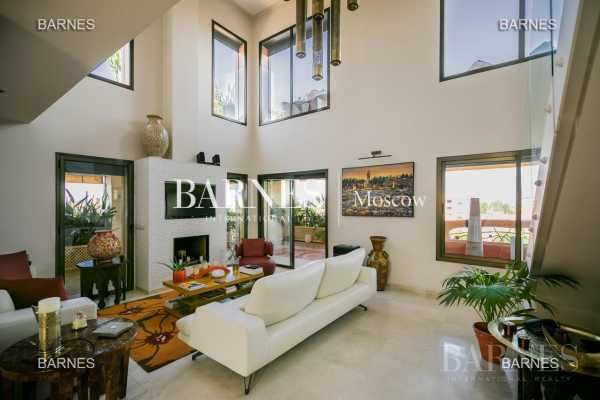 Расположенный на одном из главных бульваров центра Марракеша, в престижном районе Hivernage и рядом со всеми магазинами, этот триплекс площадью более 300 кв.м. предлагает роскошный вид на сады Кутубии и горы Атласа. Этот обширный триплекс состоит из 3 спален. На 4-м этаже находится великолепная гостиная площадью более 40 кв.м., столовая и камин, полностью оборудованная кухня entièrement и мастер-комната. На 5-м этаже TrÃ, светлая и просторная, эта квартира в стиле модерн предлагает вам также две мастер-комнаты и accà на 3 террасы, в том числе на крыше площадью 90 кв.м.