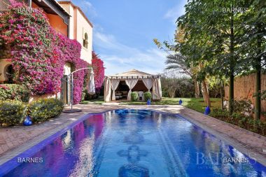 Продается нетипичная вилла типа Riad R+2, построенная известным архитектором Чарльзом Боккарой, 2 виллы продаются частично меблированными, 5 спален и 5 ванных комнат. Монте заряда, TrÃ`s тихий, неповторимый и захватывающий дух вид, магазины в деревнегостиная с чугунной дровяной печью (закрытый навес для хранения дров) -обратимый кондиционер - кухня, марокканский хаммам + паровая турецкая баня турецкий душ-туалет, барная зона, мансарда -патио с подогревом джакузи -зимний салон с открытым огнем и реверсивным кондиционером, ТВ зона -патио с фонтаном и бассейном для воды.