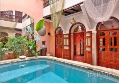 Очаровательная вилла. пальмовая роща, деревенский и чистый стиль на красивом участке земли, хорошо засаженном пальмами 3800м2, с видом на юг, с видом на поле для гольфа La Palmeraie. Эта великолепная реализация предлагает крытую площадь 400м2 с на первом этаже теплой гостиной, столовой, кухней, главной спальней с ванной комнатой и красивой затененной террасой très. Наверху находится красивая панорамная терраса trÃ, захватывающая дух и 3 гостевые спальни со своими ванными комнатами.