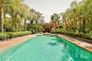 Эта современная вилла расположена в живописном парке Пальмерая на площади в один гектар: Первый этаж: - Вход 'застеклен' - W.C. (гардеробная) - Кухня - Столовая - Гостиная - 3 люкса с камином (ванная комната, гардеробная) и террасой. - Хаммам / массажный кабинет - Открытое джакузи / множество бассейнов Первый этаж: - 2 спальни с душевой комнатой: множество террас с видом 360° на Palmeraie и горы - гараж и уборщик апартаментов / персонал - прачечная - Плавательный бассейн с пляжем Услуги: - Реверсивное кондиционирование воздуха - Светлый камень на земле