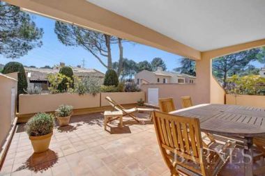 Редко! В закрытой и охраняемой резиденции высокого уровня с бассейном и теннисным кортом, расположенной в самом сердце ландшафтного парка площадью 5 га, недалеко от старой деревни и знаменитого поля для гольфа, красивые 2-х комнатные апартаменты с тройной экспозицией и просторной террасой площадью 55 м2. Он состоит из прихожей с гардеробной, светлой гостиной-столовой с видом на юг и восток, оборудованной кухни, выходящей на террасу, спальни, ванной комнаты и отдельного туалета. Он оснащен гостиной, столовой, оборудованной и подвальной комнатой.Виртуальный визит по запросу.