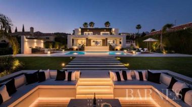 Frontline golf Los Naranjos, Nueva Andalucia,MarbellaNew built villa to the highest specs to meet therequirements of the quality and locationorientated buyer! Frontline golf, southwestfacing, quiet and private with golf and sea views.The villa is offering a total of 7 bedrooms, and atotal of 6 bathrooms + a guest toilet.Built over three floors and the property featuresan Italian designer kitchen fully equipped withGaggenau appliances, and bathrooms withDornbracht fittings to mention a few, full qualityspec is following in the brochure.Master bed with a huge elegant wardrobe, withen-suite bathroom and easy access to the terraceto enjoy the views, even from the bathtub.On this upper floor you find another en-suitebedroom and additional 2 bedrooms sharing onebath, all with built-in spacious oak wardrobes.In the lower part you find 2 more bedrooms,washing room and a beautiful wine cellar, gymand a home-cinema ? ideal for the movie-lovingfamily to enjoy after having spent the whole daysunbathing or golfing!Beautiful landscaped gardens with a stunningchill out zone with water features, extra sizedheated pool with outside shower and plenty of space to sunbath, with an outside BBQ kitchen ?all with the stunning views over the the golfcourse.All details are carefully studied in this villamaking it the absolute Dream Home.