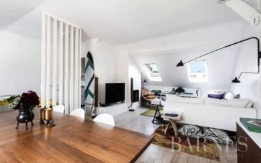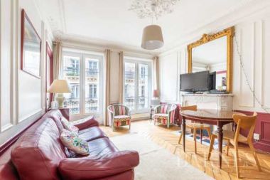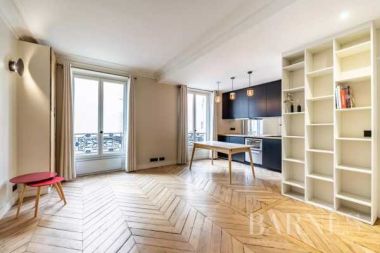 Расположенная в Золотом треугольнике на тихой улице с односторонним движением, эта типично парижская квартира в здании конца 19 века состоит из прихожей, оборудованной американской кухни (столешница из кориана, духовка, плита, вытяжка и холодильник-морозильник), отдельного туалета, гостиной, номера-люкс со шкафами по индивидуальному заказу и итальянской душевой. Как в квартире, так и в совладельце, в 2014 году был произведен капитальный ремонт очень высокого качества: паркетные полы, лепнина, звукоизоляция.Квартира представлена Барнсом, агентство недвижимости Париж 8.