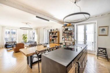 Расположенная на 8 и 9 этажах здания 1959 года, квартира площадью 124 кв.м. с ремонтом, с которой открывается потрясающий вид на Эйфелеву башню, Сену и памятники Парижа. Она включает в себя прихожую, большую гостиную, выходящую на широкий балкон, главную спальню с гардеробной и ванной комнатой, а также две другие спальни, душевую, кухню и прачечную. В четвертую спальню 9-го этажа можно попасть по частной лестнице с террасы (22 кв.м. / 223 кв.м.) с видом на внутренний двор. Подвал и парковка (в дополнение к цене) завершают этот объект недвижимости. Виртуальный визит возможен.