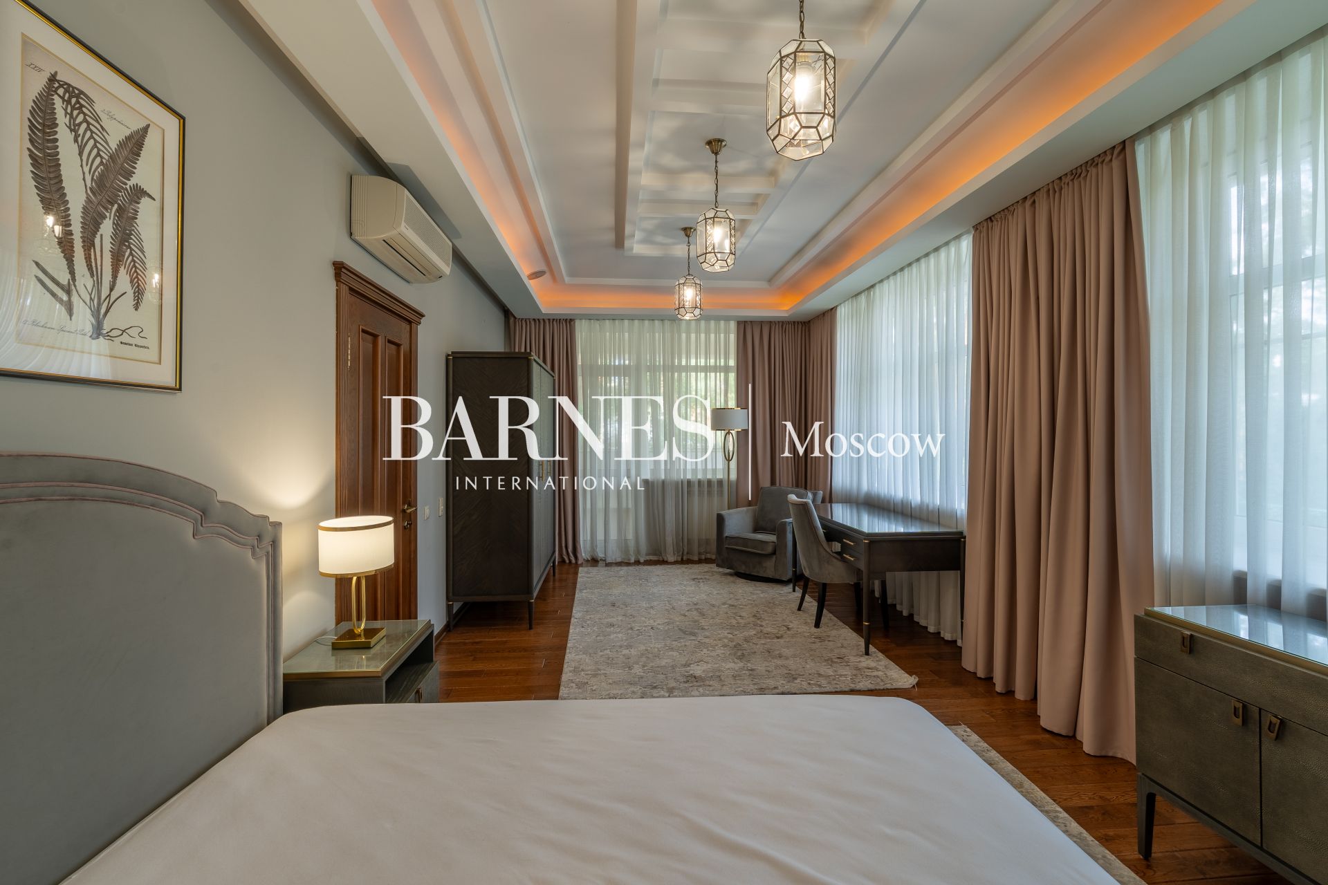 Предлагается в аренду стильный и комфортабельный дом 680 кв.м. на лесном участке 15 соток в СП Барвиха. 7 км. от МКАД по Рублево-Успенскому шоссе или Можайскому. Есть выезд на платную скоростную дорогу.