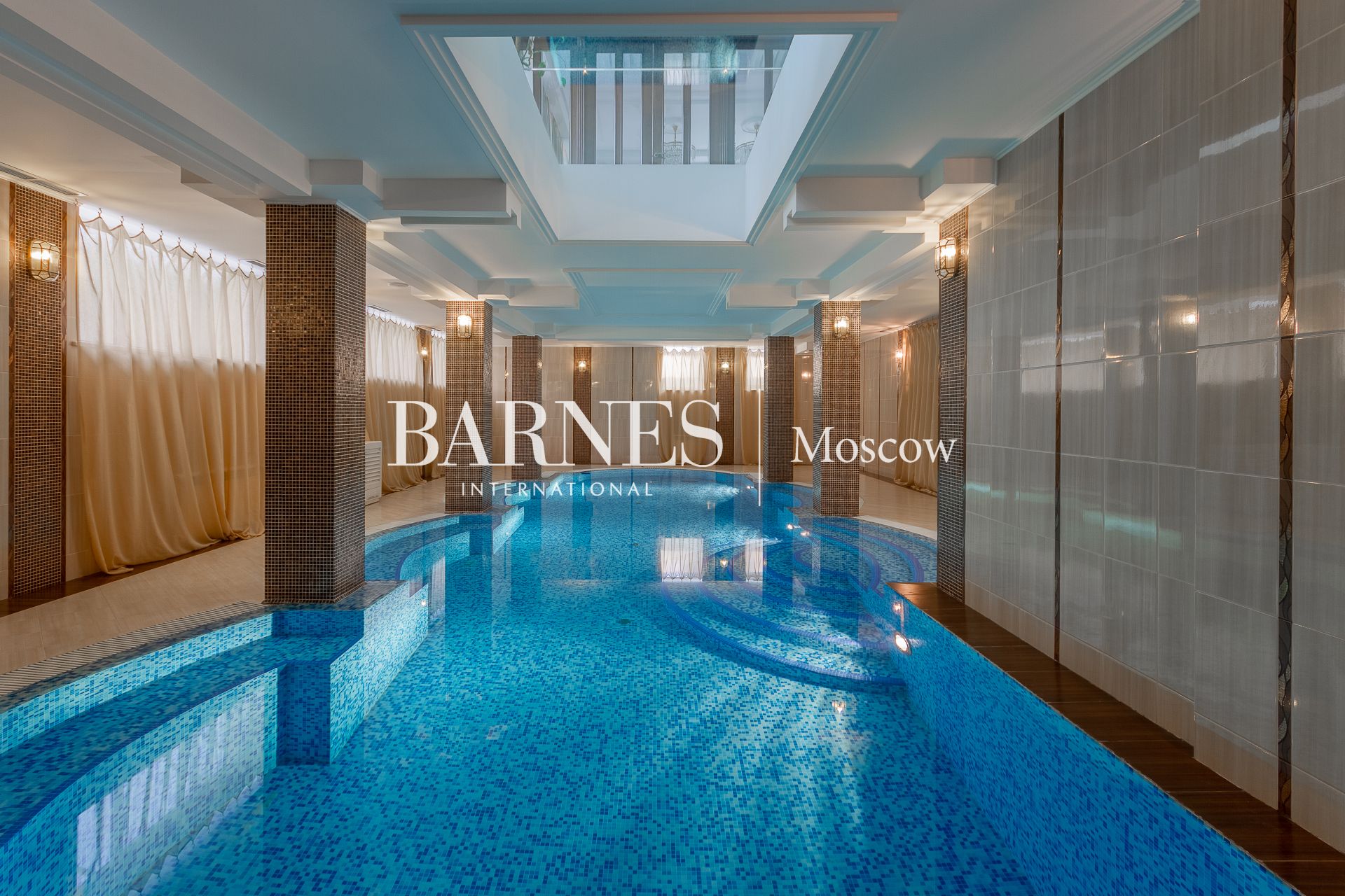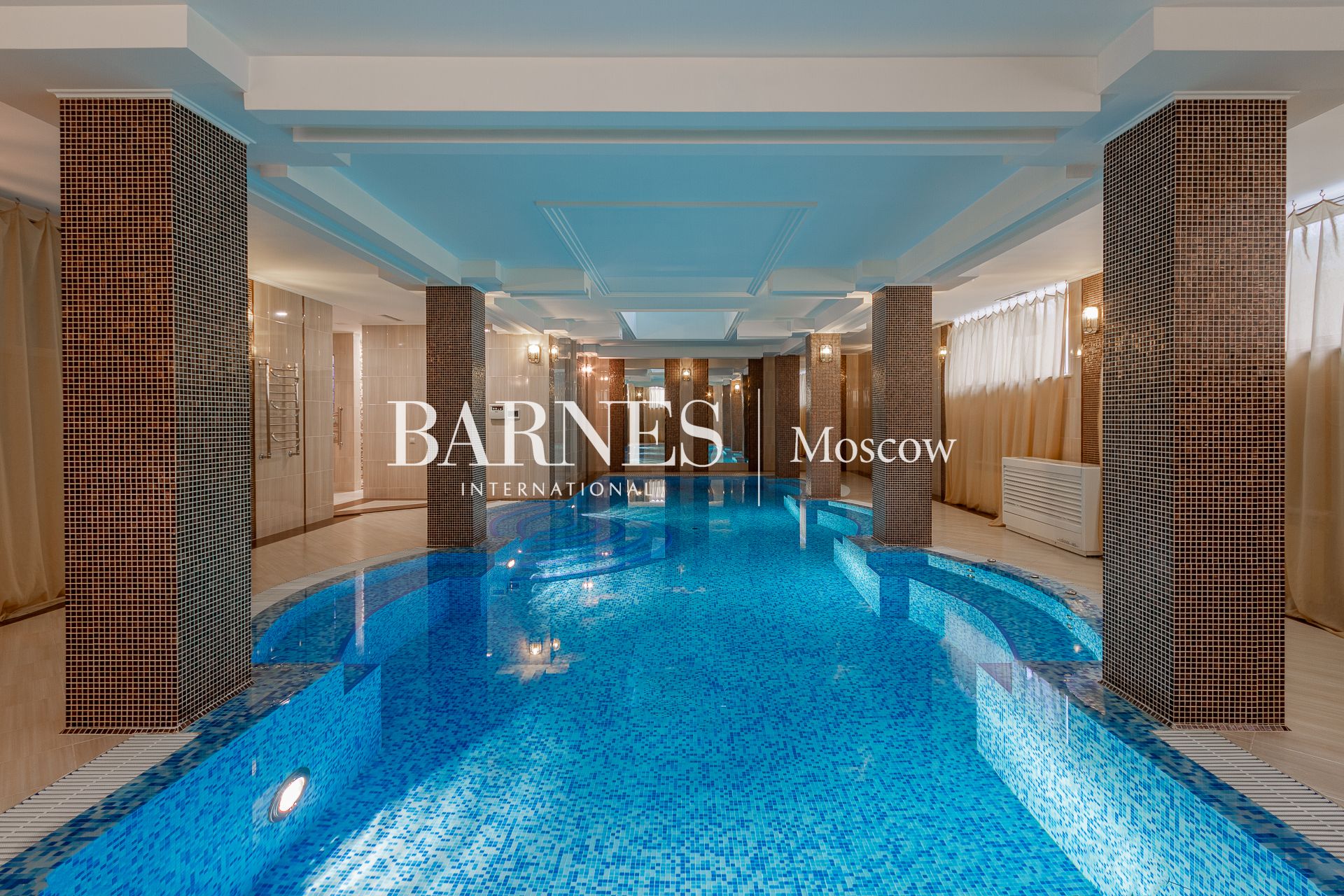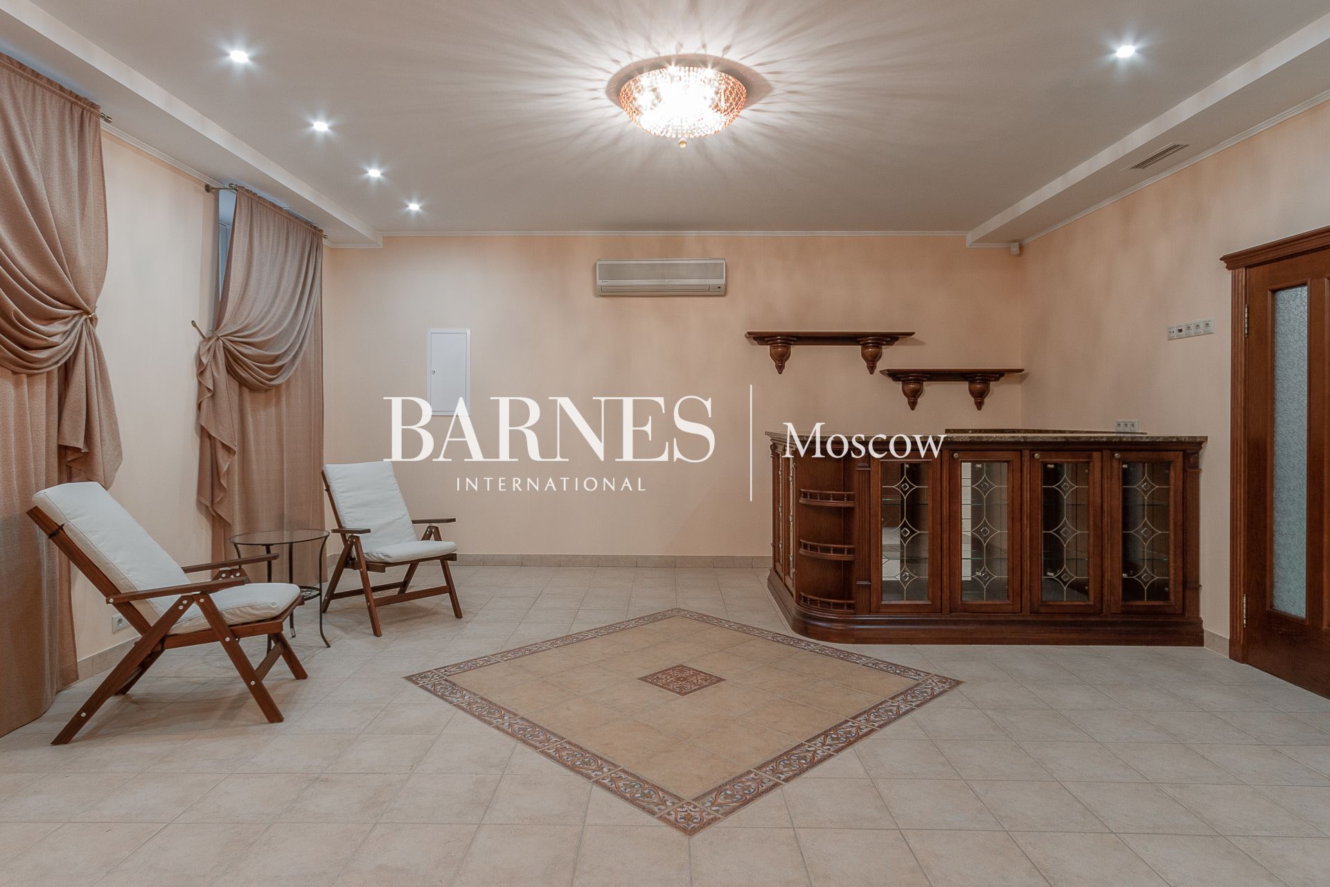 Цокольный этаж: бассейн с гидромассажем, противотоком и гейзером 14 м., сауна, санузел, душевая, комната отдыха с барной стойкой и холодильником, кинозал, прачечная;