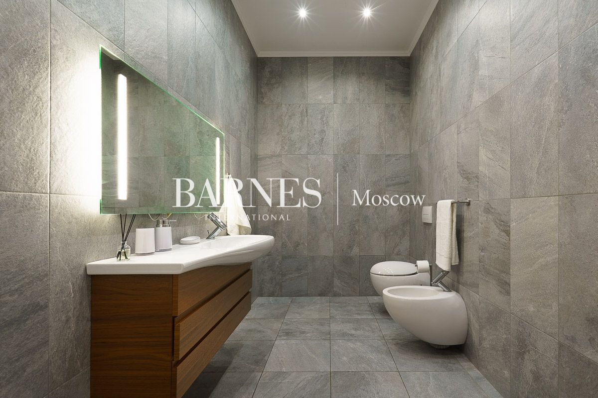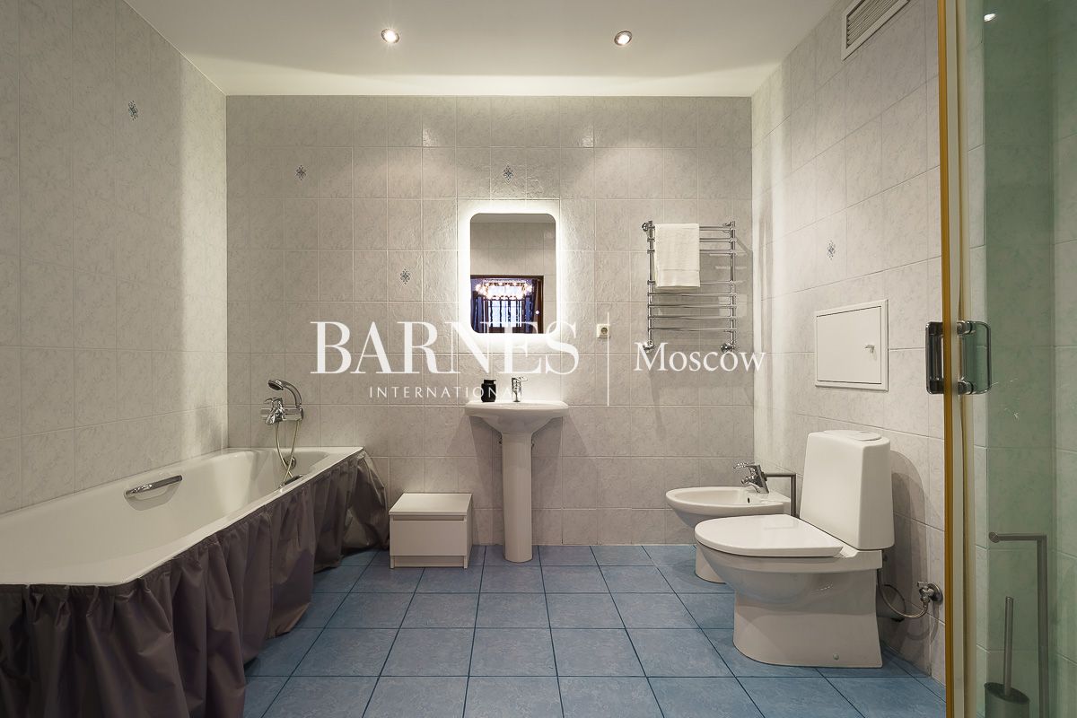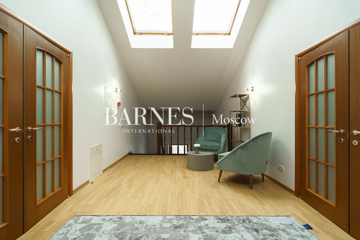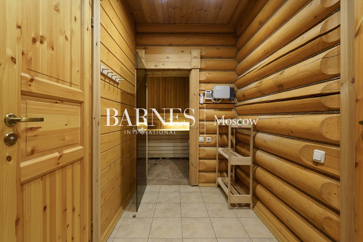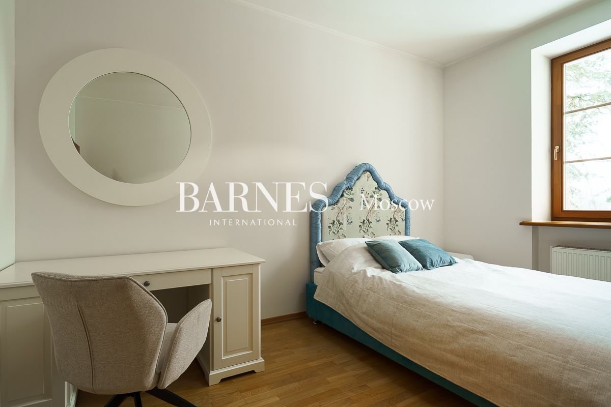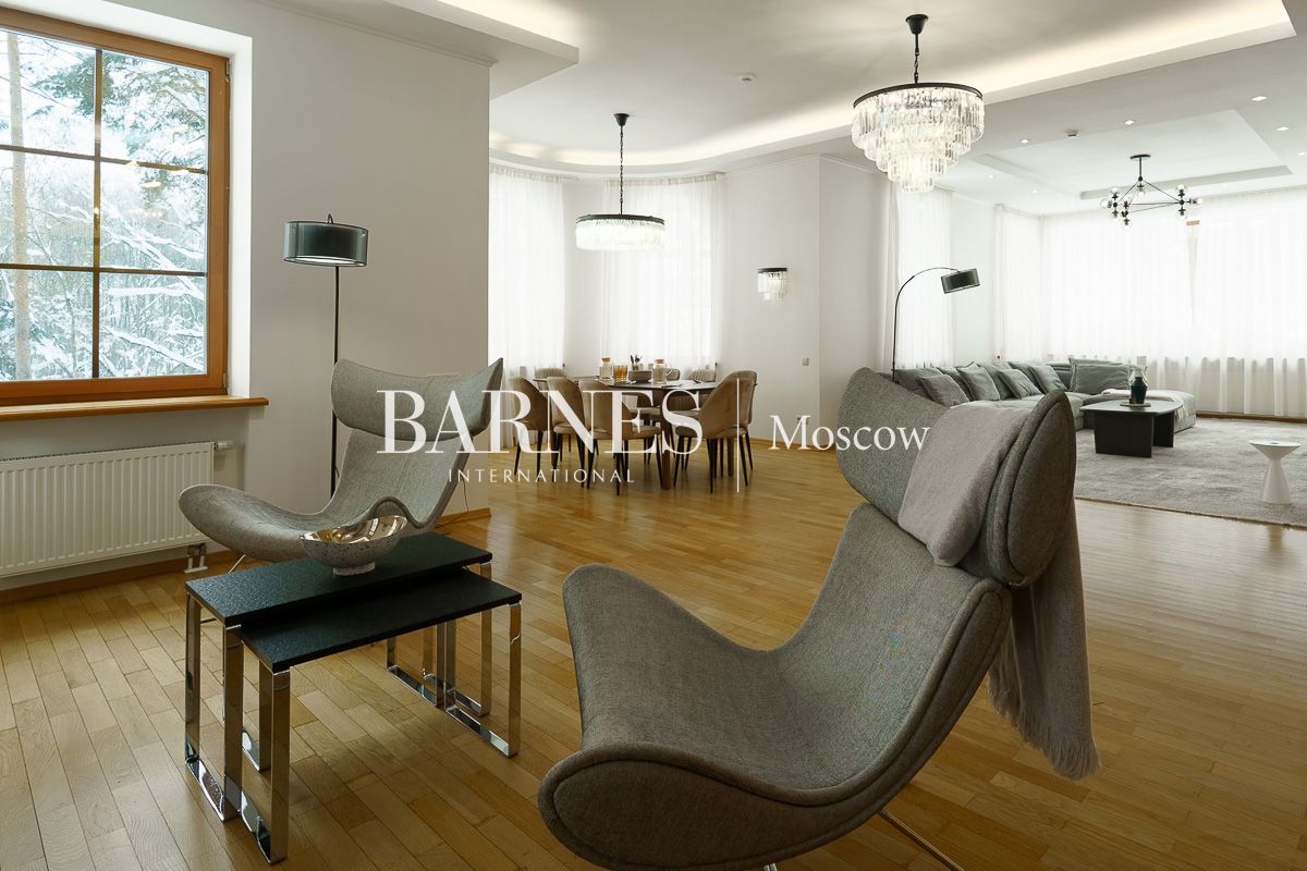 Просторная гостиная-столовая 100 м² с камином кухня, домашний кинотеатр и бильярдная, мастер-спальня, 3 детские спальни, кабинет, гостевая спальня, терраса, балкон.