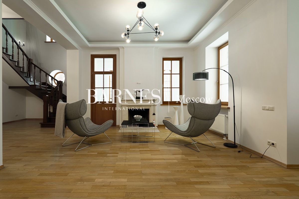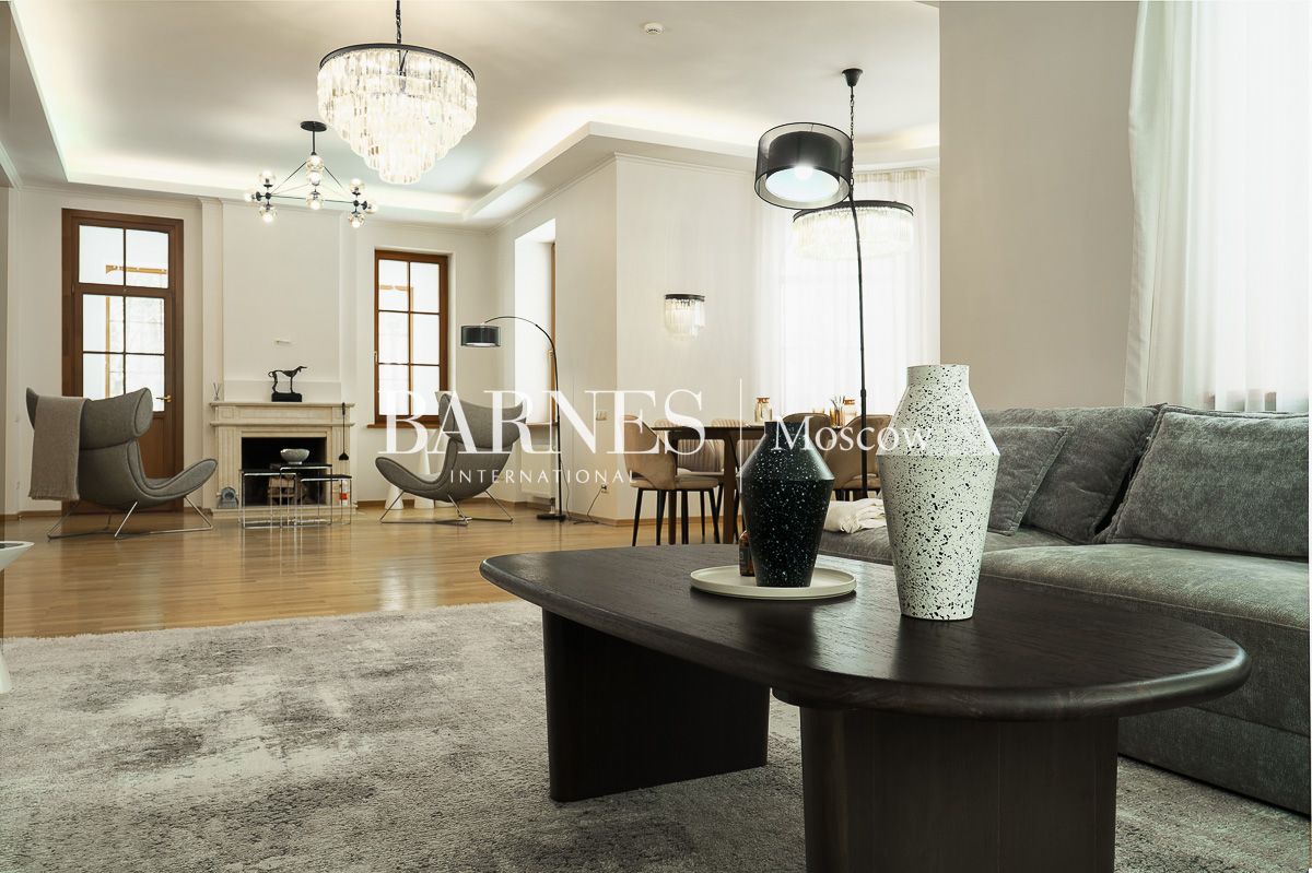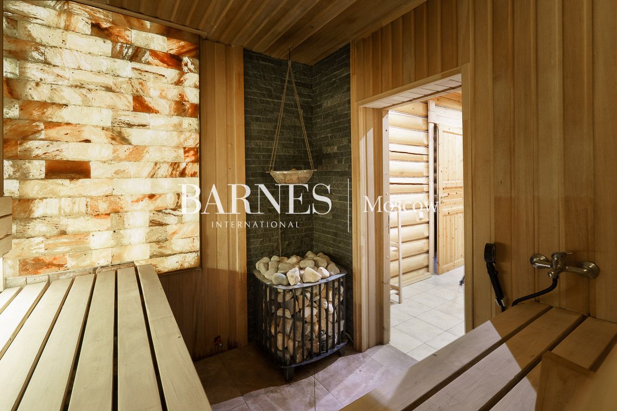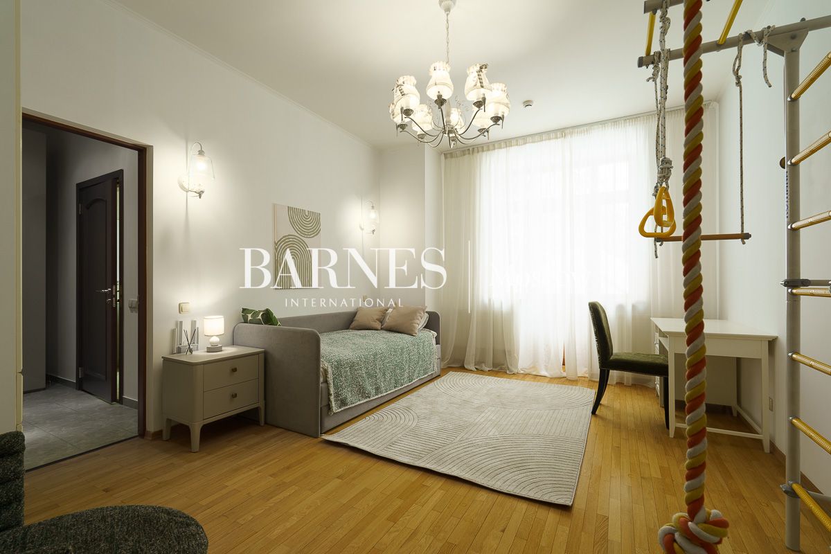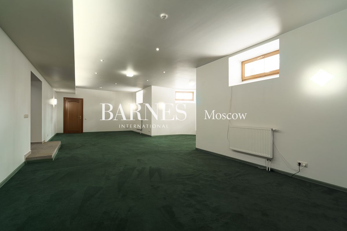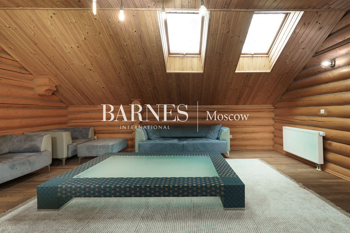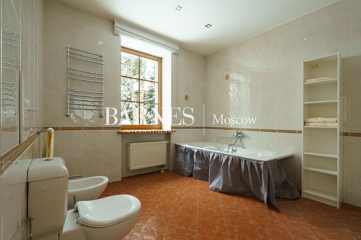 Просторная гостиная-столовая 100 м² с камином кухня, домашний кинотеатр и бильярдная, мастер-спальня, 3 детские спальни, кабинет, гостевая спальня, терраса, балкон.
