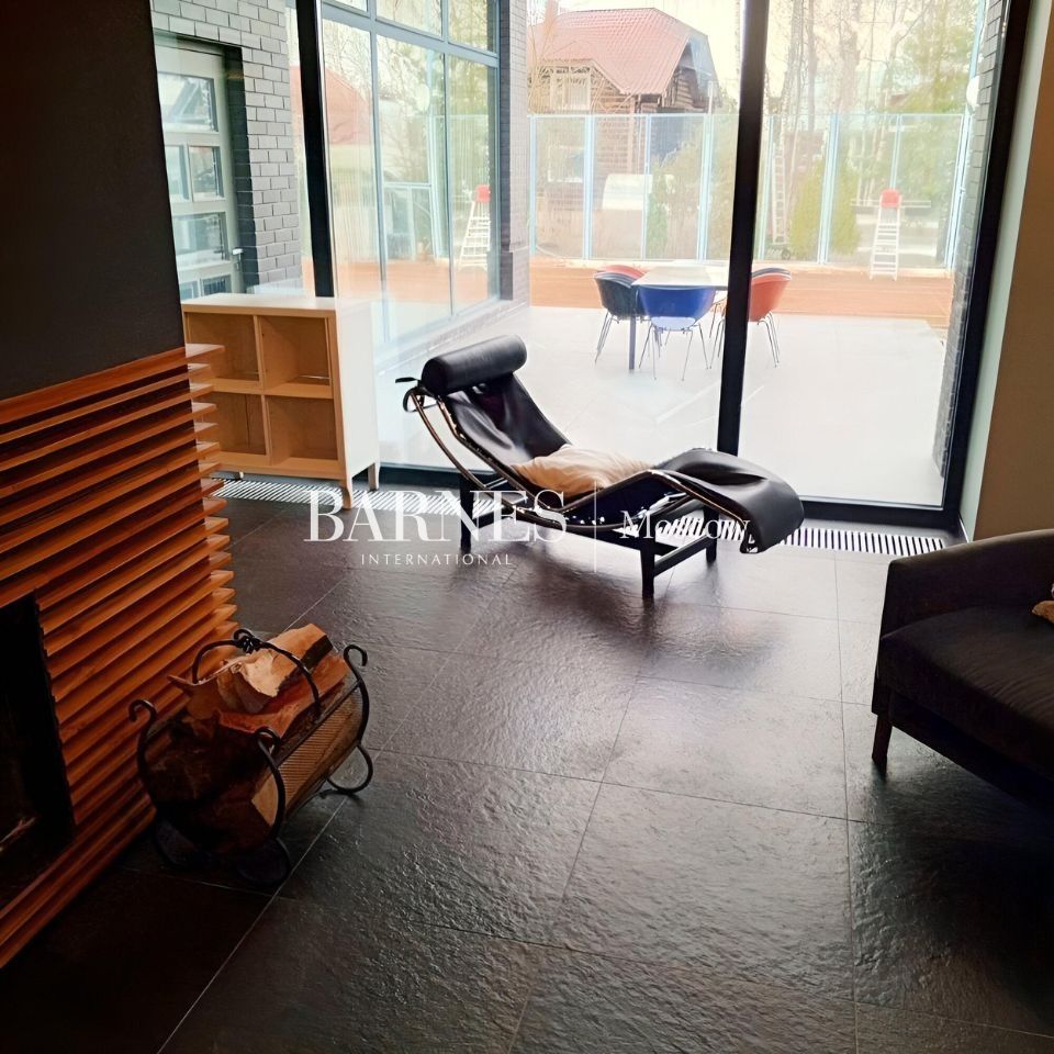 1 этаж: холл, гардеробная, гостиная со вторым светом и выходом на террасу, столовая, кухня, с/у, СПА-зона с раздвижными окнами и выходом на террасу, бассейн 17 м., зона отдыха с камином, с/у;