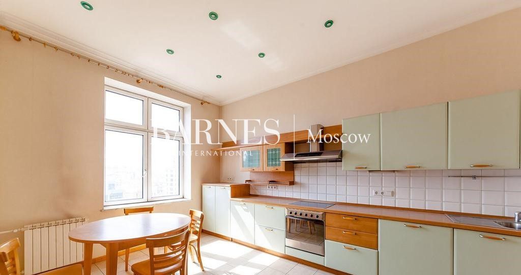 Встроенный кухонный гарнитур оснащен бытовой техникой. Полы покрыты паркетной доской и плиткой с подогревом. Высокие потолки 3.5 метра, балкон, большая лоджия.