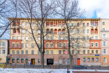 Квартира с отделкой в Бывшем Доходном доме на Петровском бульваре. Распланировано: кухня-столовая-гостиная, мастер-спальня, детская спальня, ванная комната, кабинет-спальня и гостевой санузел. Сделан современный ремонт преимущественно в светлых тонах. Их окон гостиной и кабинета открываются виды на Петровский бульвар и центр столицы. Окна спален выходят в тихий дворик.