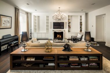 Планировка: гостиная с зоной кабинета, столовая, кухня, мастер-спальня с двумя гардеробными и санузлом, 2 детские комнаты с игровой зоной и санузлом, прачечная, гостевой санузел, гардеробная комната.
