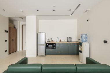 В квартире выполнена дизайнерская отделка. Планировочным решением предусмотрены: просторная кухня-гостиная с балконом и видом на сквер на уровне 4 этажа, основная спальня с собственной гардеробной комнатой, гостевая спальня или детская, 2 санузла, просторная прихожая. Квартира частично меблирована.
