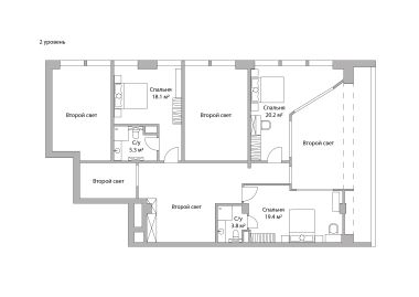 Квартира без отделки с возможностью разместить: просторную гостиную, столовую, кухню, 4-5 спален, 3 санузла, гардеробные, постирочную.