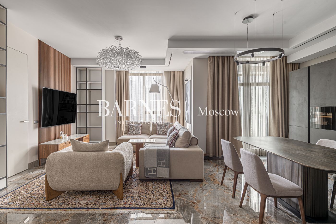 ID: 562512Элегантная квартира площадью 103.6 кв.м в жилом комплексе RedSide — гармоничное сочетание комфорта, статуса, уюта и продуманной функциональности.Планировочное решение выстроено с вниманием к деталям и приватности.Просторная гостиная с зоной кухни формирует центральное пространство квартиры — идеальное для жизни, встреч и приема гостей. Приватный мастер-блок включает спальню, гардеробную и собственный санузел, создавая автономную зону для отдыха и восстановления. Отдельная комната может служить детской или второй спальней. При входе расположен полноценный гостевой санузел с ванной.Интерьер выполнен в сдержанной современной эстетике с акцентом на качество и долговечность: встроенная кухня оснащена всей необходимой техникой, мебель подобрана в единой стилистике и соответствует высокому уровню.В отделке и оснащении квартиры использованы премиальные европейские бренды: изысканная сантехника Villeroy&Boch и встроенная кухонная техника Kuppersbusch. Каждая деталь подчеркивает безупречный стиль и комфорт. Высокие потолки и панорамные окна в пол наполняют интерьер естественным светом и визуально расширяют пространство, подчеркивая ощущение свободы и воздуха. Застекленная лоджия органично дополняет жилую площадь, становясь уютной лаундж-зоной.Квартира производит цельное впечатление: светлая, просторная, с выверенным зонированием и атмосферой уюта, которая ощущается с первых минут.Резидентам доступен подземный паркинг с доступом на лифте. Круглосуточная охрана, видеонаблюдение и полностью закрытая среда обеспечивают высокий уровень безопасности и комфорта.Инфраструктура уровня private club, на территории квартала создана полноценная среда для жизни: фитнес-клуб World Class с 50-метровым бассейном, частный детский сад с английским уклоном, рестораны, кафе, салоны красоты и сервисы повседневного комфорта. Благоустроенная территория с продуманным ландшафтом формирует приватную атмосферу: зеленые зоны, прогулочные аллеи, детские и спортивные пространства органично интегрированы в архитектурную концепцию.RedSide расположен в одном из самых востребованных районов центра — Пресне. Отлична транспортная доступность: быстрые выезды на Садовое кольцо, ТТК и Звенигородское шоссе; 10 минут пешком до метро «Улица 1905 года»; близость к Москва-Сити и Экспоцентру.В окружении — знаковые городские пространства: Московский зоопарк, парк «Красная Пресня», Красногвардейские пруды и набережные для прогулок и отдыха.Квартира в ЖК Red Side - идеальный вариант для всех , кто ценит приватность, комфорт и функциональность.Участник ассоциации AREA.