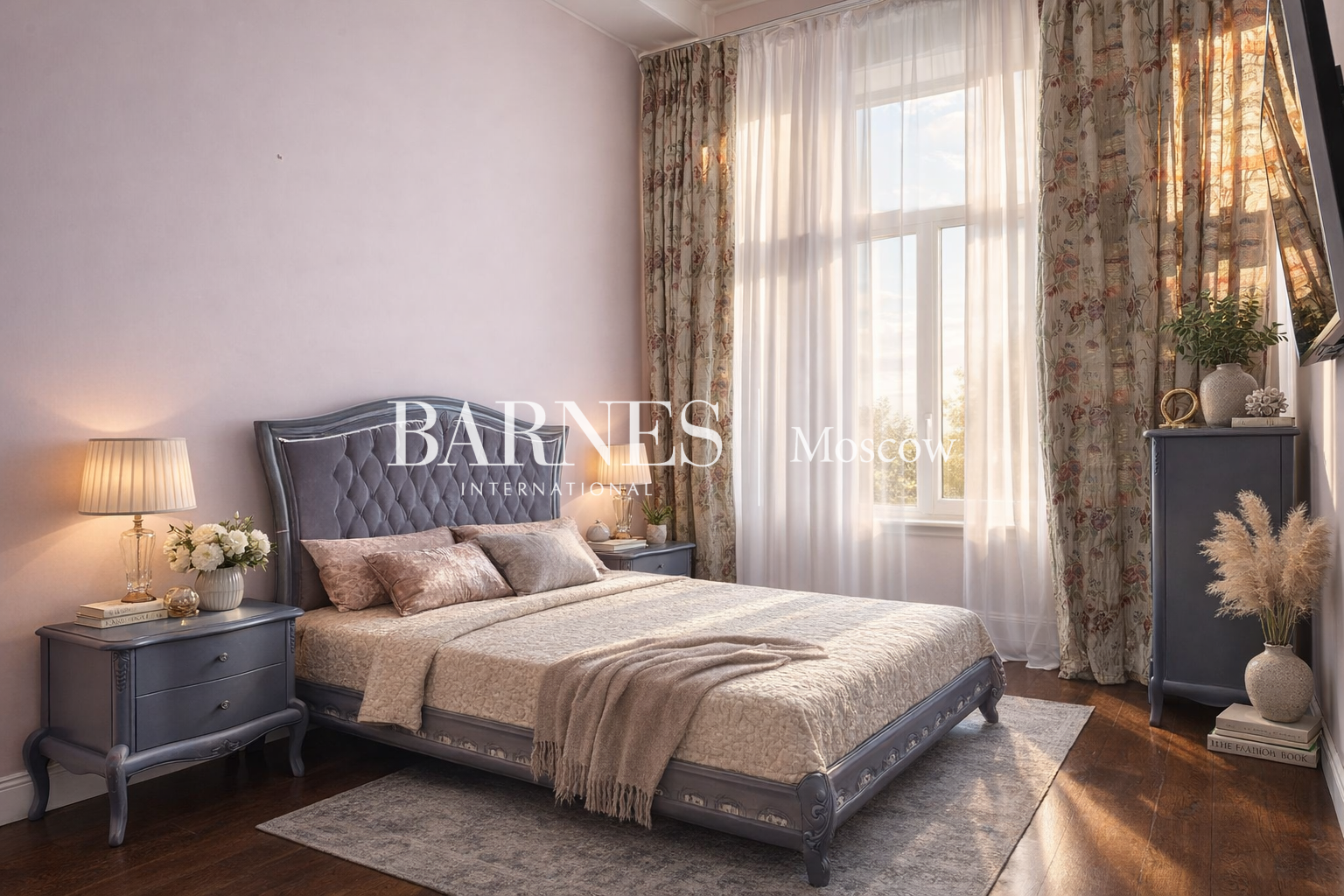 1 уровень: просторная мастер-спальня с 3 гардеробными и ванной комнатой с окном во внутренний двор, вторая спальня с ванной комнатой и прекрасным балконом с видом на Поварскую улицу, третья спальня, кабинет, постирочная и гостевой санузел;