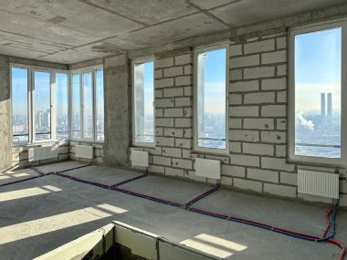 В квартире выполнена дизайнерская отделка. Планировочным решением предусмотрены: гостиная с зоной кухни, 2 спальни, кабинет, 2 совмещенных санузла и гардеробная комната.