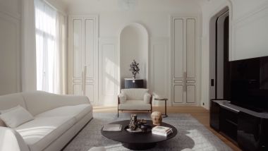 Из окон апартамента открываются наилучшие виды на Сквер Девичьего поля. Высокие потолки 4 метра. Два отдельных входа в апартамент позволяют отделить доступ для собственников и персонала.