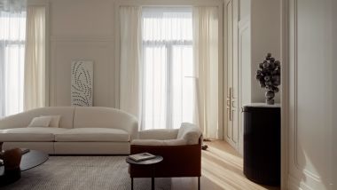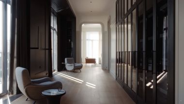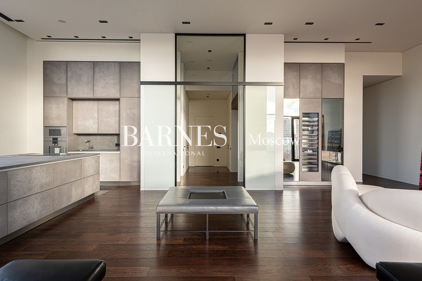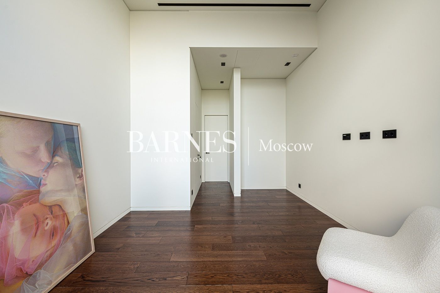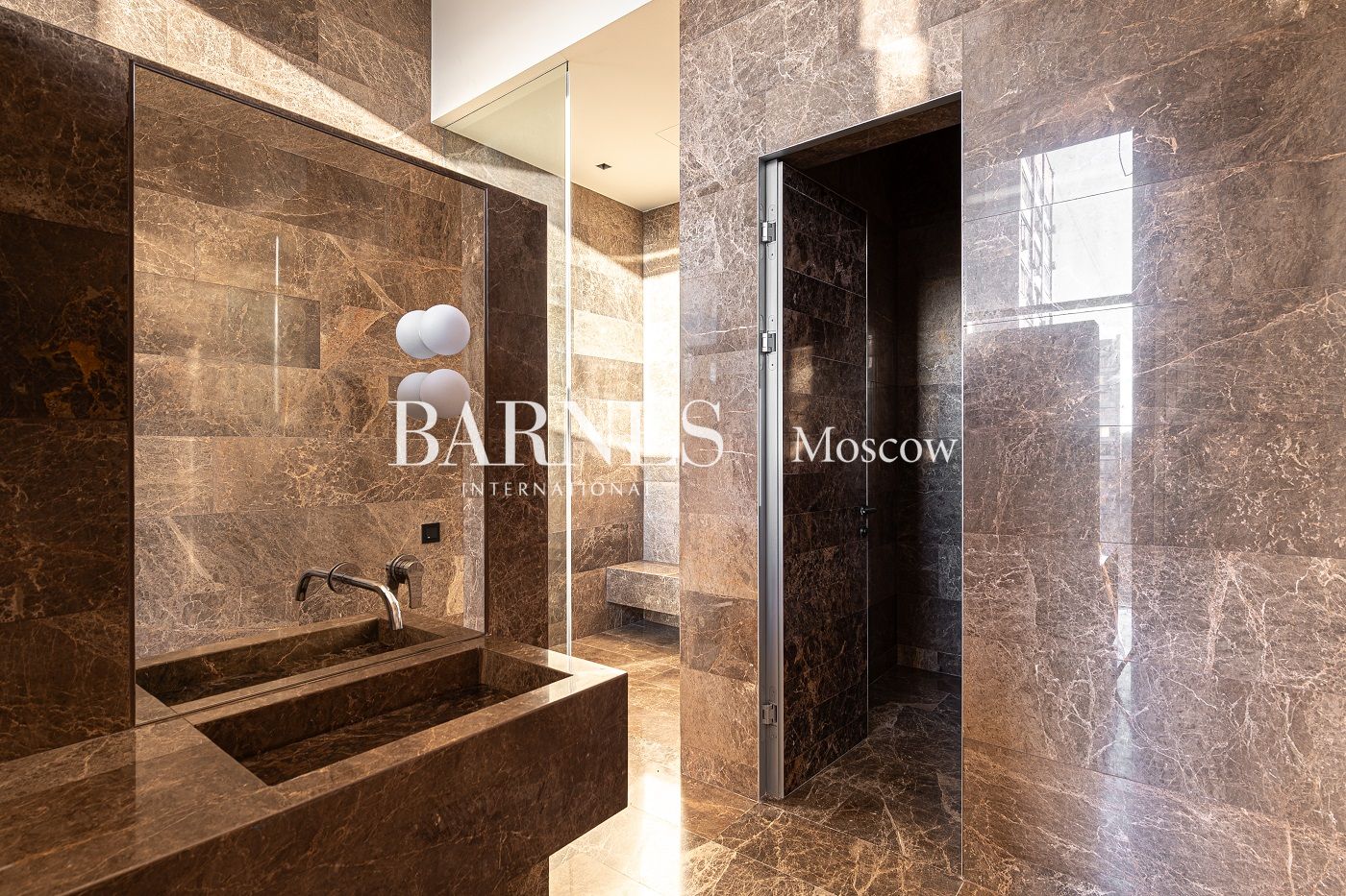 В апартаменте выполнена дизайнерская отделка. Планировочным решением предусмотрены: просторная гостиная с зоной кухни-столовой, 4 спальни с собственными санузлами, гардеробные комнаты, постирочная.