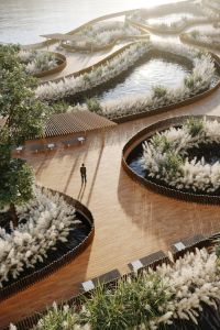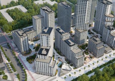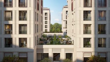 Современные фасады комплекса от архитектурного бюро Speech. Стильные лобби. Предусмотрен подземный паркинг. Огороженная, охраняемая и благоустроенная территория с ландшафтным парком, прогулочными дорожками, зона отдыха с фонтаном «сухого» типа, галереей, декорированной статуями, спортивными и детскими площадками. Зимой на месте фонтана открывается каток.