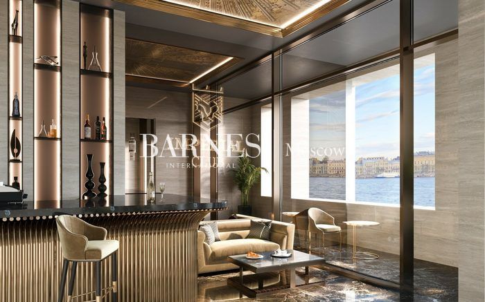 Основные характеристики резиденции: - Общая площадь: 145.87 кв.м. - Планировка 4 комнаты (3 спальни из них две мастер - спальни + кухня - гостиная 42,89 кв.м.) - Потолки: 3 метра - Видовые характеристики: лоджия и балконы с выходом на Неву (остекление в пол), вид на купола Исаакиевского собора, Ледокол Красин, воду; - Общая концепция: 4Е-комнатная квартира, идеальная для семьи из 4–5 человек без компромиссов - Периметр дома: закрытая придомовая территория, охрана, видеонаблюдение; - Инженерия и коммуникации: подведение систем кондиционирования, IP-домофония, Touch-free двери, умные лифты - Паркинг: 2-уровневый подземный паркинг - Архитектура: фасады из натурального камня и клинкера в 3D-кладке; панорамные окна и парящие балконы - Лобби и сервис: двухуровневые входные группы высотой более 8 м, консьерж-сервис, лобби-бар с террасой