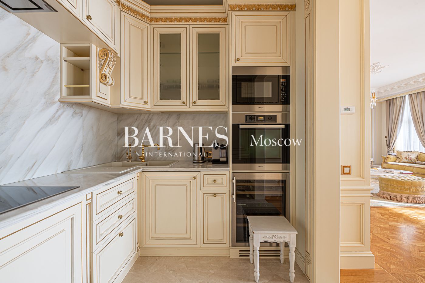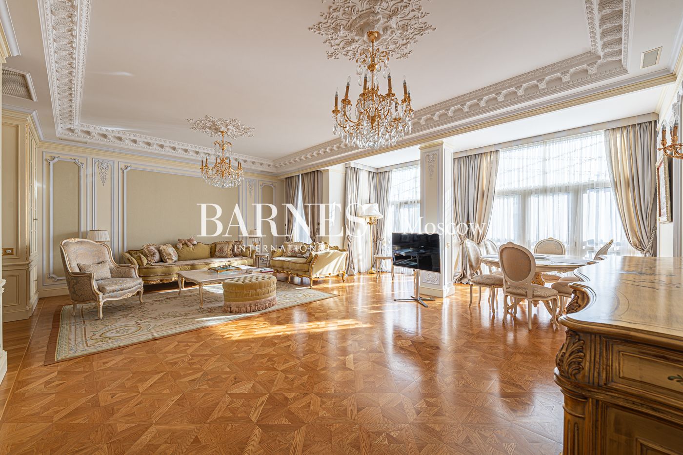 ID: 585570Роскошная 3-комнатная квартира общей площадью 190 кв.м. в клубном комплексе «Green Plaza», расположенном в пешей доступности от Кремля, в одном из самых живописных мест исторического центра Москвы. Здесь царит атмосфера тишины, уюта и по-настоящему столичного лоска, а до знаковых культурных мест — всего несколько минут пешком.Интерьер квартиры оформлен в духе сдержанной элегантности: классические формы, натуральные материалы, мрамор, ценные породы дерева, лепнина ручной работы и благородные декоративные акценты создают атмосферу изящной роскоши.Функциональное планировочное решение: просторная и светлая гостиная с зонами столовой и кухни, мастер-спальня с санузлом, вторая спальня с санузлом, гостевой санузел, большой холл с продуманной системой освещения, встроенными системами хранения и изысканными декоративными акцентами, создающими ощущение уюта и гармонии.Панорамные окна наполняют пространство светом и открывают великолепные виды на историческую Москву. Высокие потолки создают атмосферу легкости и простора.В клубном доме «Green Plaza» всего 28 резиденций, что обеспечивает уединённость и приватность. Презентабельная входная группа. Круглосуточная охрана. Для комфорта владельцев предусмотрены два машино-места в подземном паркинге.Идеальный выбор для тех, кто ценит тишину центра, эстетику архитектуры, удобство городской жизни и близость к лучшему, что может предложить Москва — от Консерватории и театров до уютных ресторанов и престижных школ.Участник ассоциации AREA.