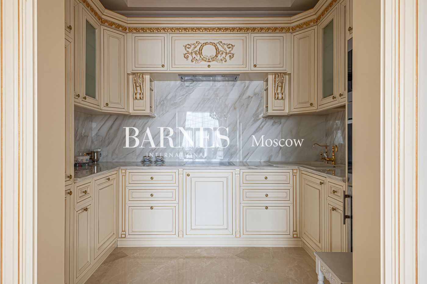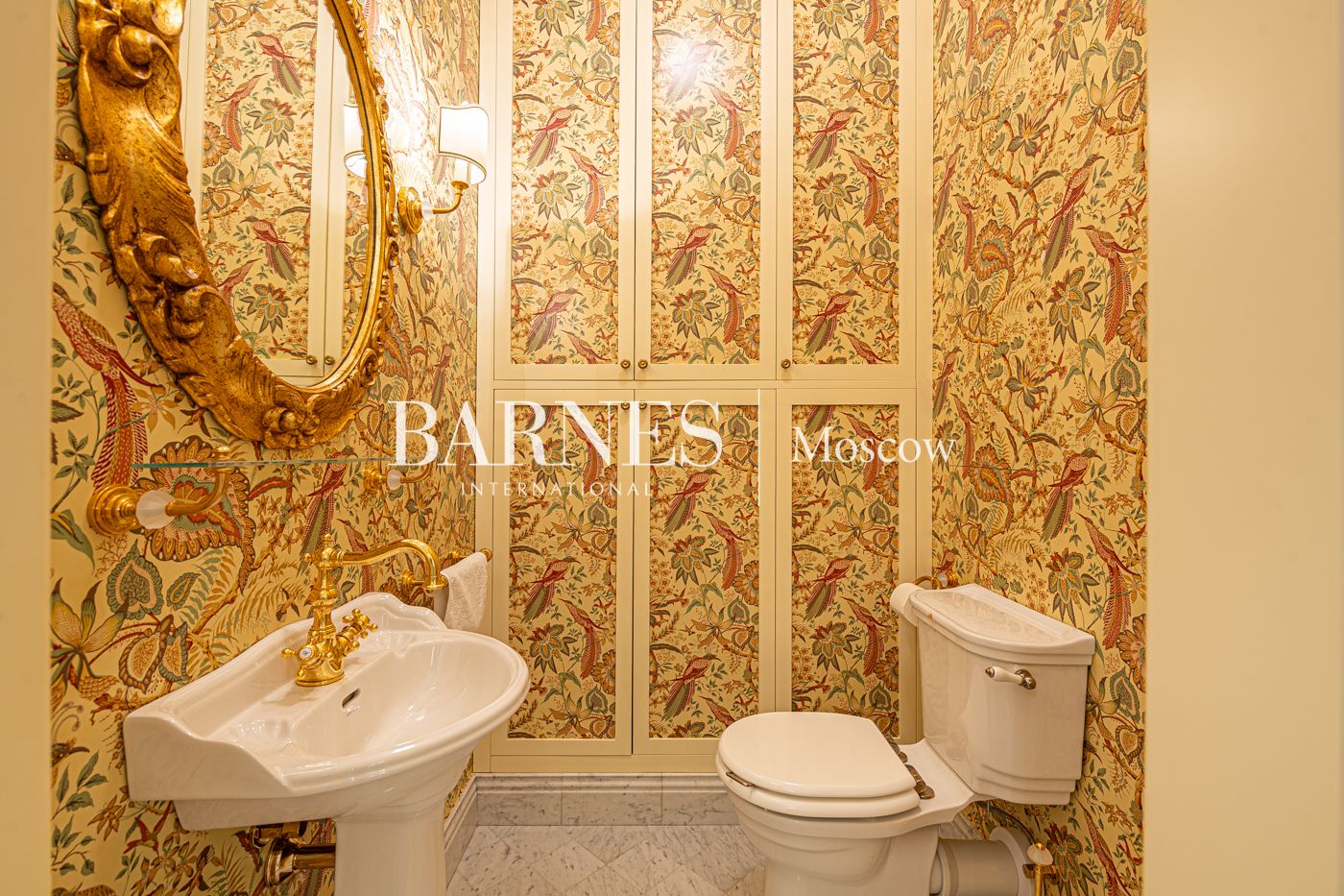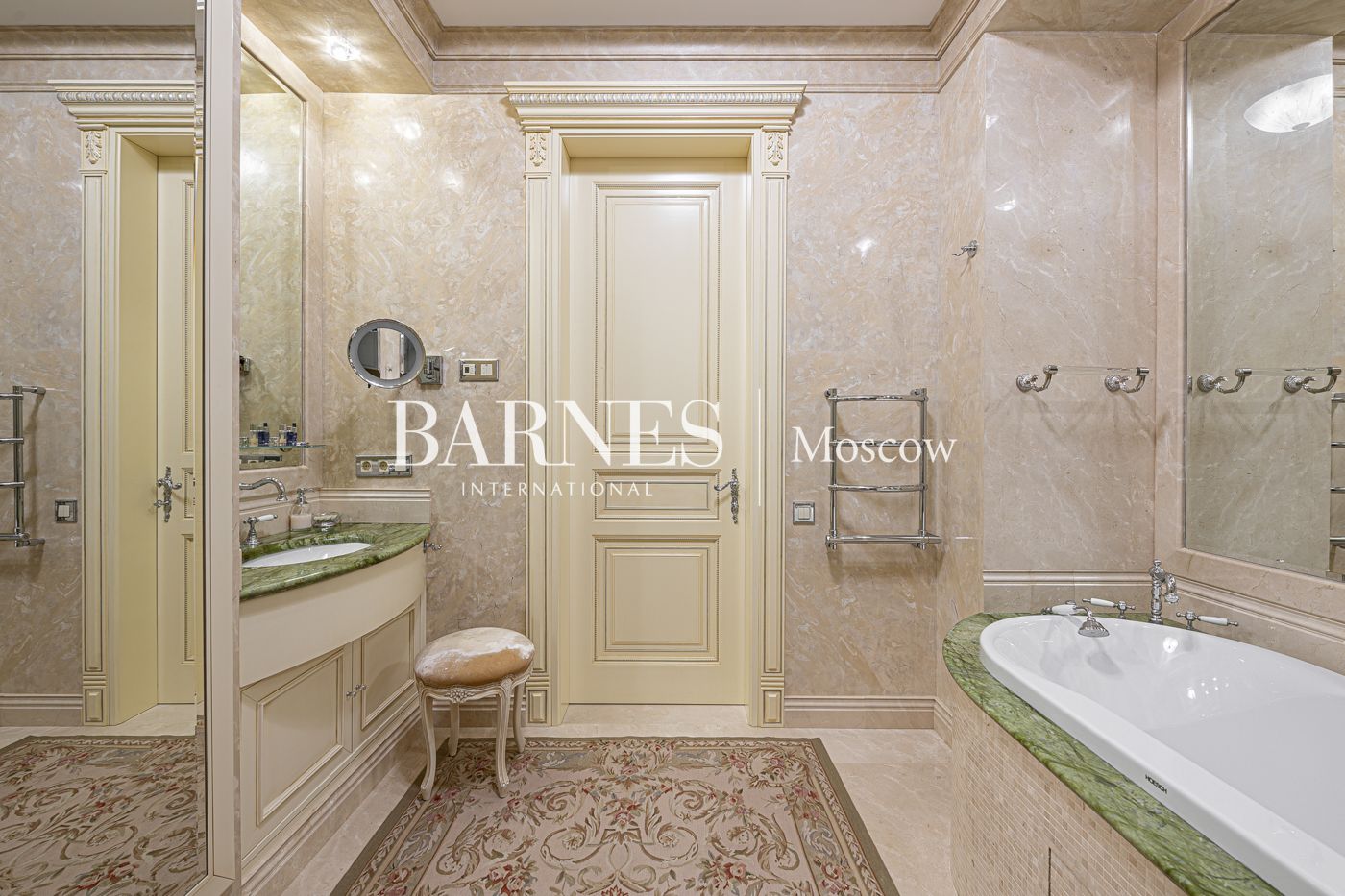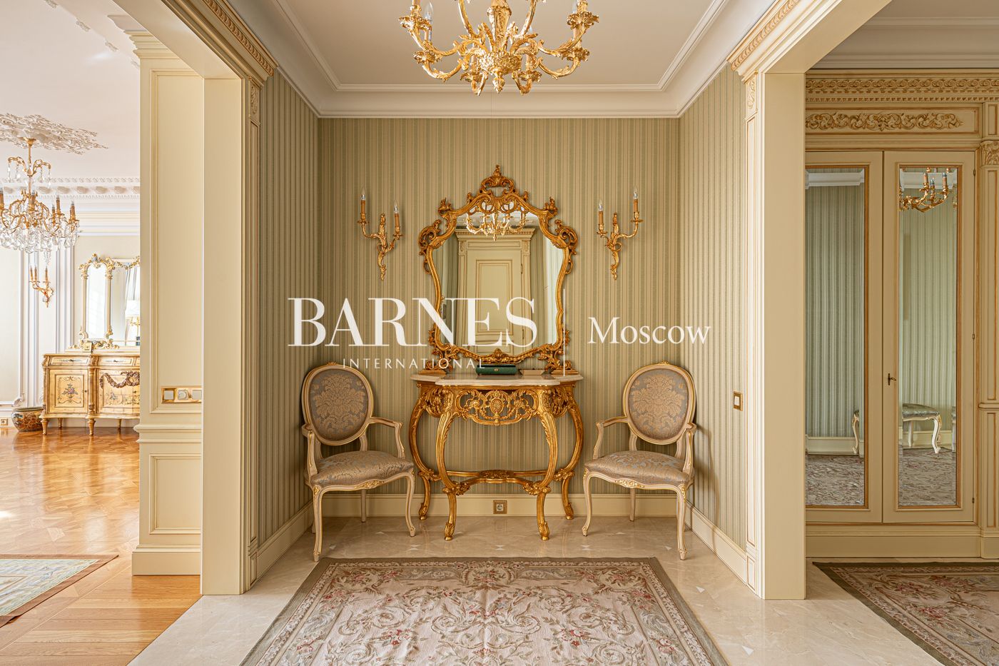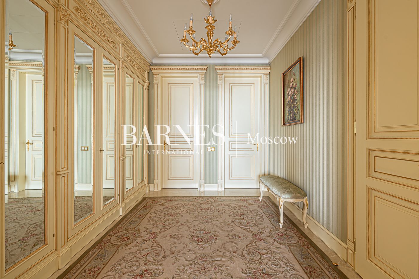 Интерьер квартиры оформлен в духе сдержанной элегантности: классические формы, натуральные материалы, мрамор, ценные породы дерева, лепнина ручной работы и благородные декоративные акценты создают атмосферу изящной роскоши.