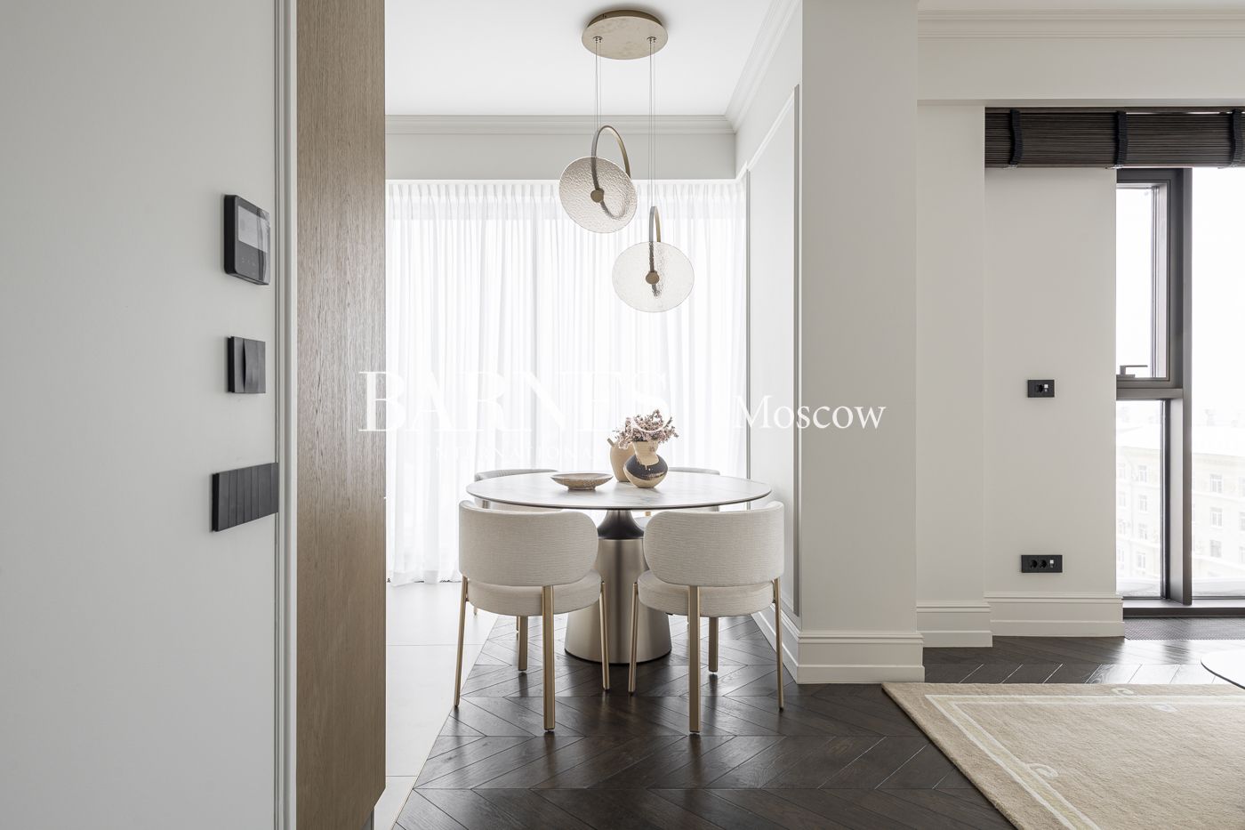 ID: 585862Дизайнерский 3-комнатный апартамент площадью 86.8 кв.м на 10 этаже премиального жилого комплекса «Поклонная 9».Апартамент с авторской отделкой в стиле «Вне времени», полностью меблирован и укомплектован техникой и декором. Планировочным решением предусмотрены: просторная гостиная с зоной кухни-столовой, мастер-спальня с гардеробной и санузлом, вторая спальня, санузел, прихожая с гардеробом.В отделке использованы премиальные материалы и бренды: напольное покрытие - инженерная доска из дуба премиальной селекции, керамогранит Florim (Италия); стены окрашены краской Majestic (Франция); сантехника Dornbracht (Германия); итальянская кухня; техника Smeg.Панорамное остекление с великолепным видом на город. Высокие потолки 3.2 м.На нижних этажах здания разместится пятизвездочный отель международного уровня с доступом к услугам и безупречному сервису для резидентов комплекса: фитнес-центр с панорамным бассейном, SPA-центр, конференц-залы, рестораны, кафе-бары с летними верандами, магазины. Дизайнерские входные группы от Нью-Йоркского бюро Rockwell Group. Консьерж-сервис. Закрытая и благоустроенная территория с детскими площадками и уютными зонами отдыха. Видеонаблюдение. Предусмотрен подземный паркинг с зарядками для электромобилей. Отличная транспортная доступность: удобные выезды на Кутузовский проспект и ТТК; до станции метро Парк Победы 8 минут пешком.Участник ассоциации AREA.