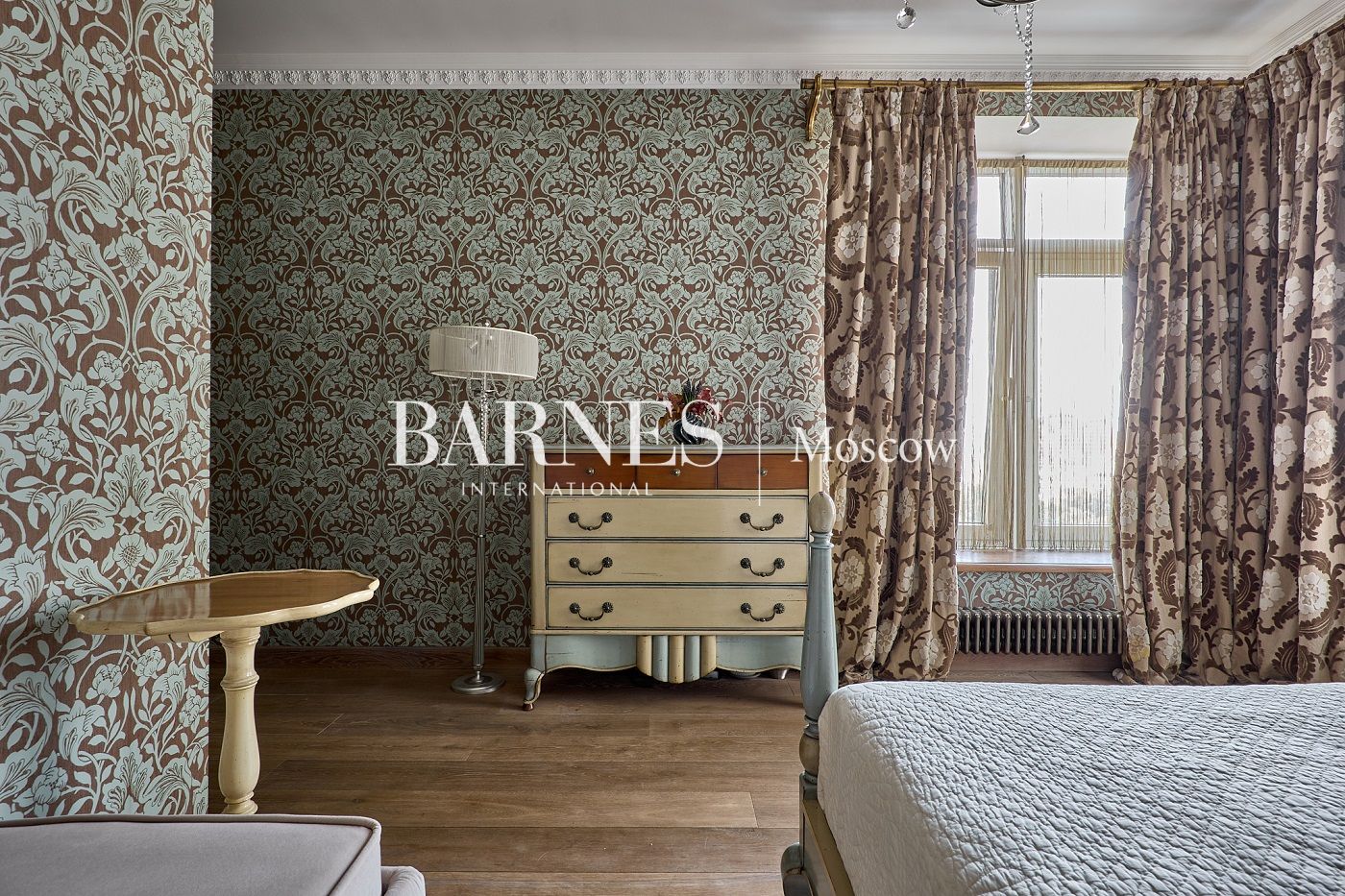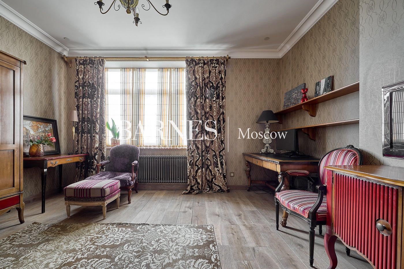 В квартире выполнена качественная отделка в стиле Прованс , с использованием натуральных материалов. Квартира расположена в малоэтажной секции, на площадке всего 4 квартиры. Планировочным решением предусмотрены: просторная гостиная, кухня, мастер-спальня с гардеробной и санузлом, вторая спальня, кабинет (или третья спальня), гардеробная, 2 санузла, постирочная, прихожая с гардеробной зоной. Из окон квартиры открывается вид на Чапаевский пер., парк и фонтан.