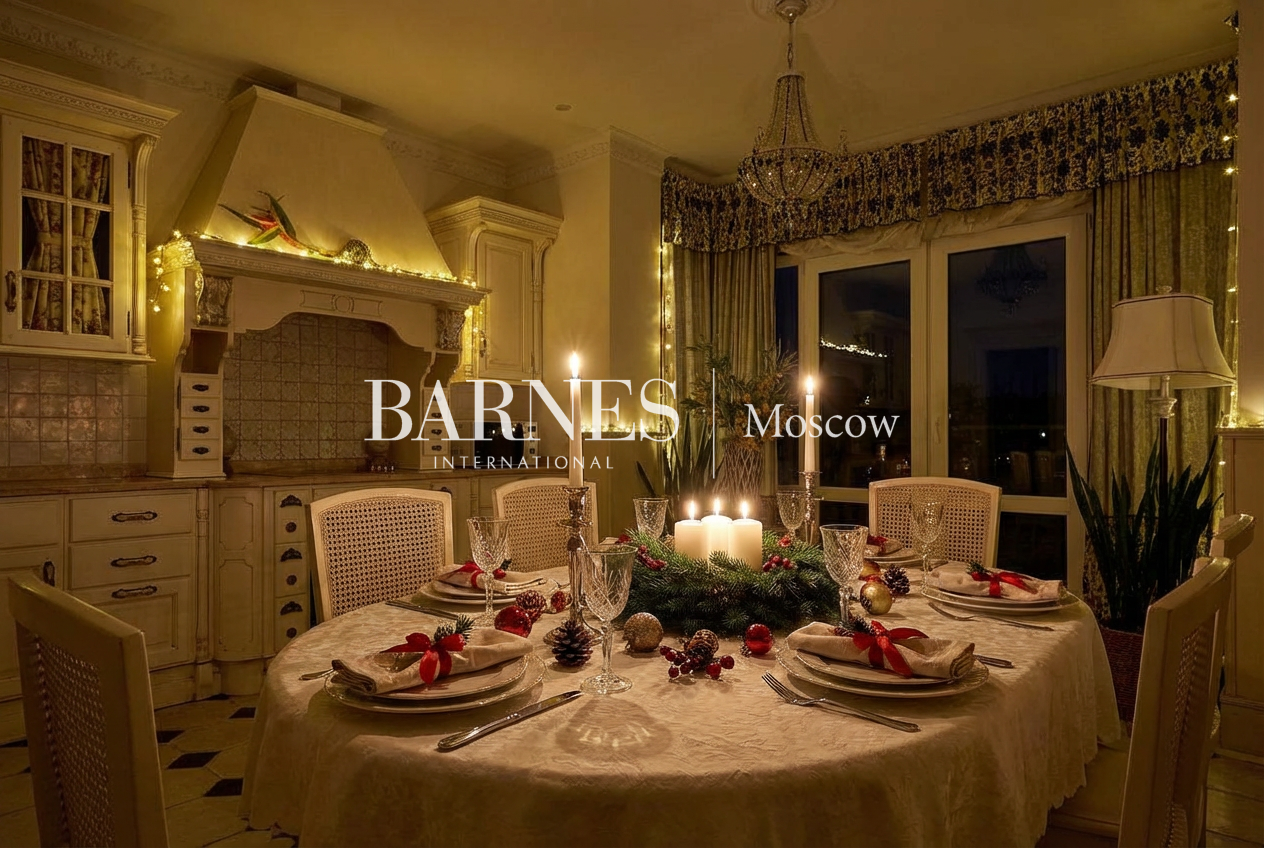 В квартире выполнена качественная отделка в стиле Прованс с использованием натуральных материалов. Планировочным решением предусмотрены: просторная гостиная, кухня, мастер-спальня с гардеробной и санузлом, вторая спальня, кабинет (или третья спальня), гардеробная, 2 санузла, постирочная, прихожая с гардеробной зоной.