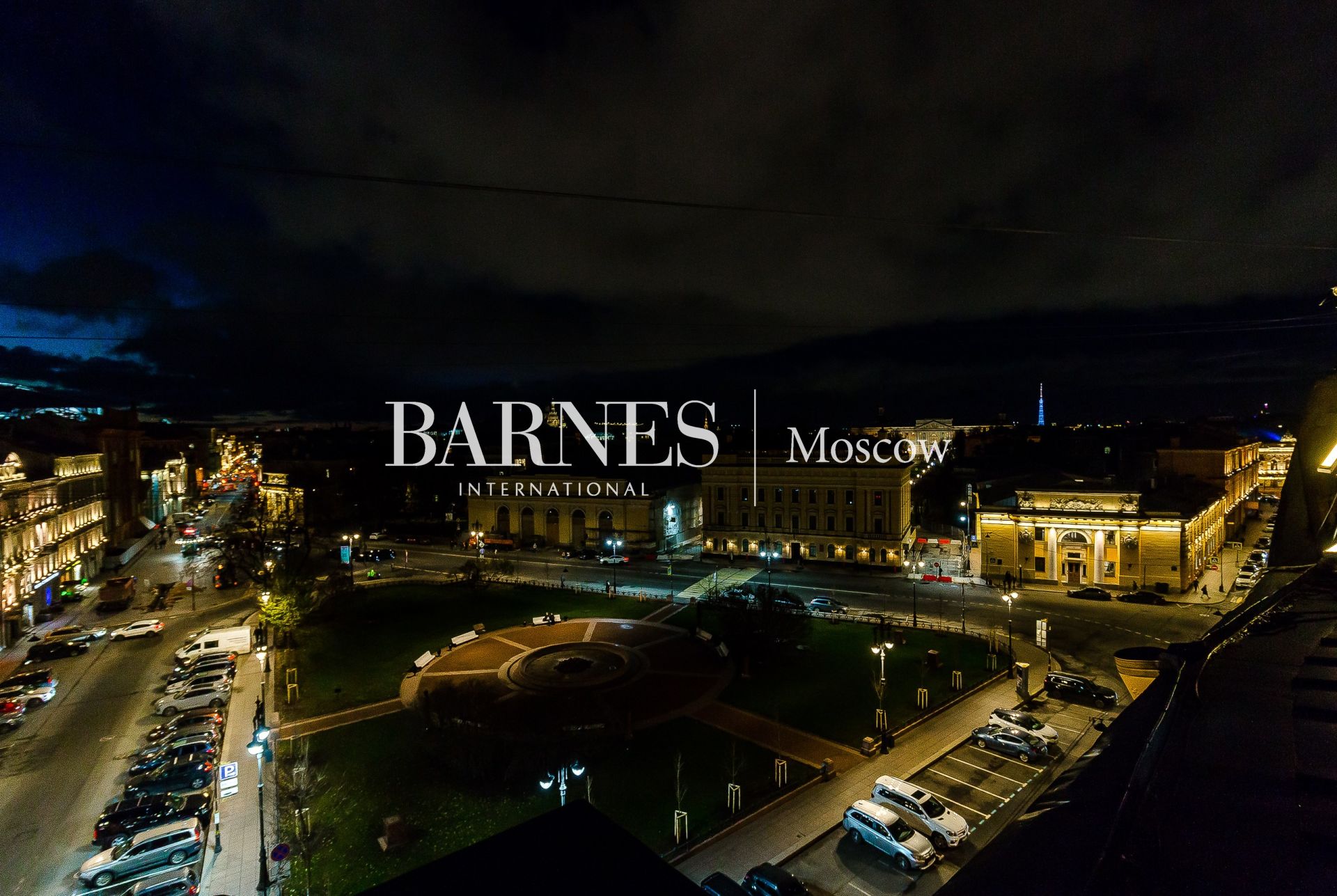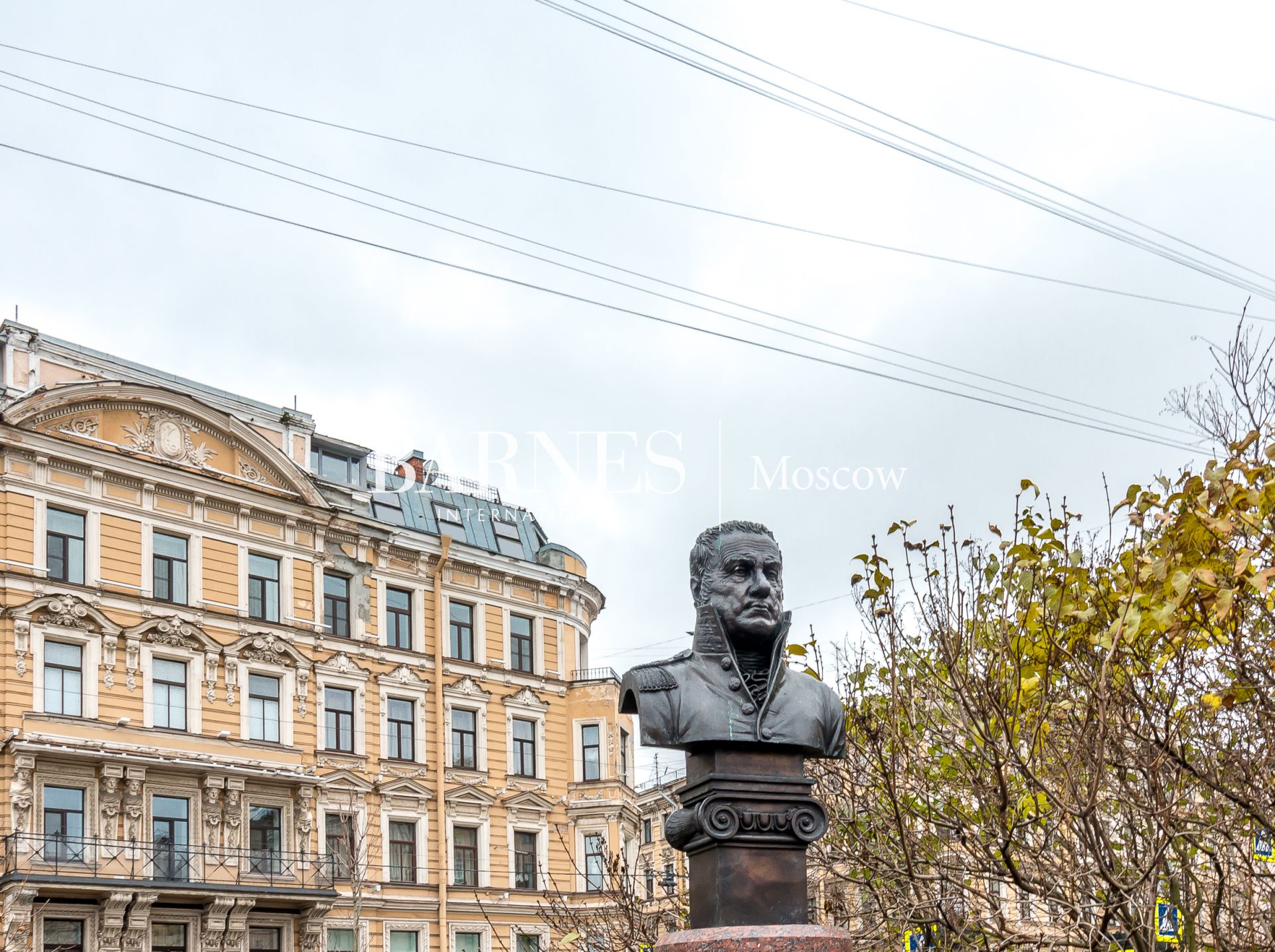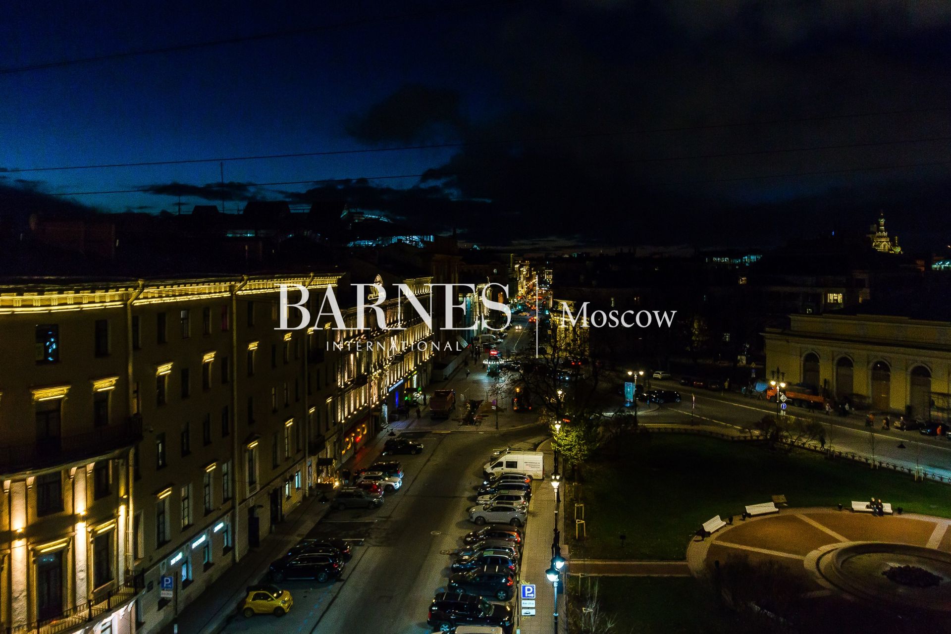Именно так ощущается эта двухуровневая квартира под самой крышей исторического дома на углу Итальянской и Караванной и безусловно с неповторимым видом с лоджии на Манежную площадь.Тут нет суеты.Тут город звучит тише, а горизонт — ближе.